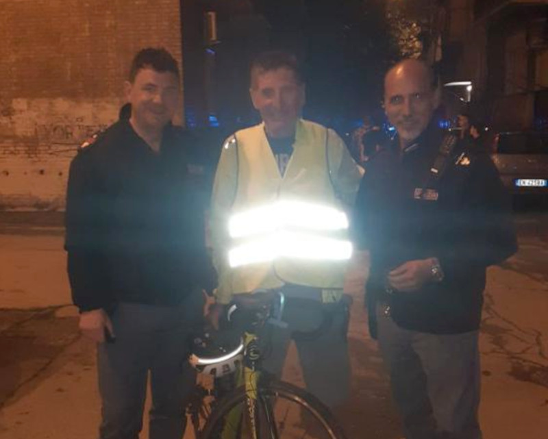 Raggiunto di nuovo lo stadio, sempre in bici, Bonacina è stato deviato all’ingresso della curva foggiana. “Ho trovato due poliziotti che mi hanno chiesto cosa facessi lì in bici. Ho raccontato loro la mia storia. Sono rimasti basiti. Ho ‘parcheggiato’ e poi mi hanno scortato fino al settore ospiti, dove ho raggiunto gli amici lecchesi. A fine gara hanno fatto altrettanto, scortandomi dalla parte opposta dello stadio, dove ho recuperato la bicicletta e prima di salutarmi i due gentilissimi poliziotti hanno voluto fare una foto ricordo”.