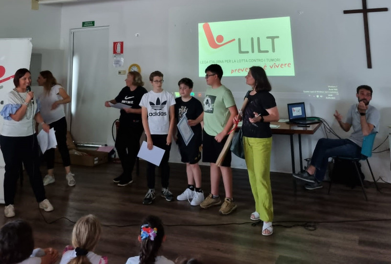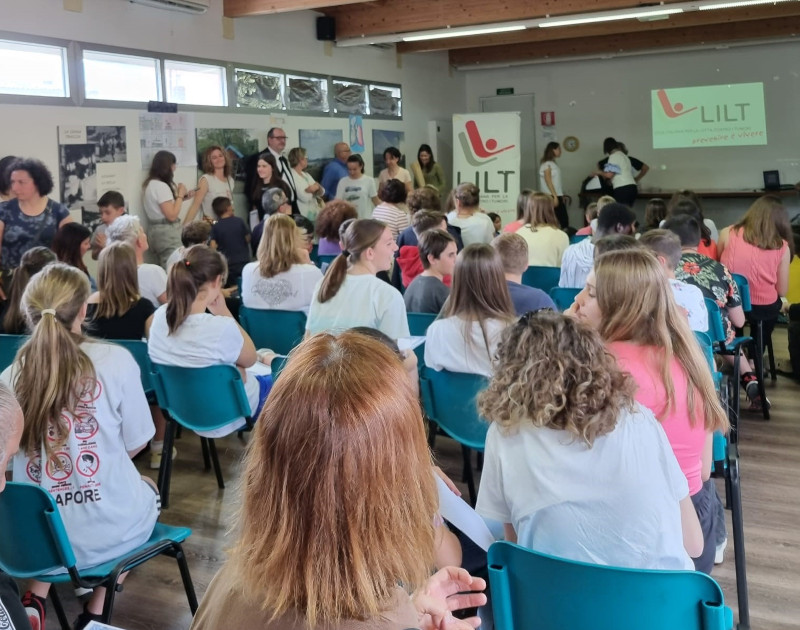 Mercoledì, alla presenza della Presidente LILT dr.ssa Silvia Villa, delle volontarie e degli operatori capitanati dalla dr.ssa Laura Valsecchi psicologa e coordinatrice LILT per i progetti scolastici, più di un centinaio di ragazzi si sono riuniti con i loro genitori ed insegnanti per un momento di festa, con musica, animazione, merenda sana a base di frutta e – momento più atteso dai ragazzi – la premiazione degli elaborati presentati dagli studenti: nell’ambito dei progetti, infatti, gli operatori LILT hanno “sfidato” i giovani studenti a partecipare ad un concorso a premi: disegni e ricette sane per “Alimentare la salute” e spot promozionali contro il tabacco per “Good bye fumo!”.