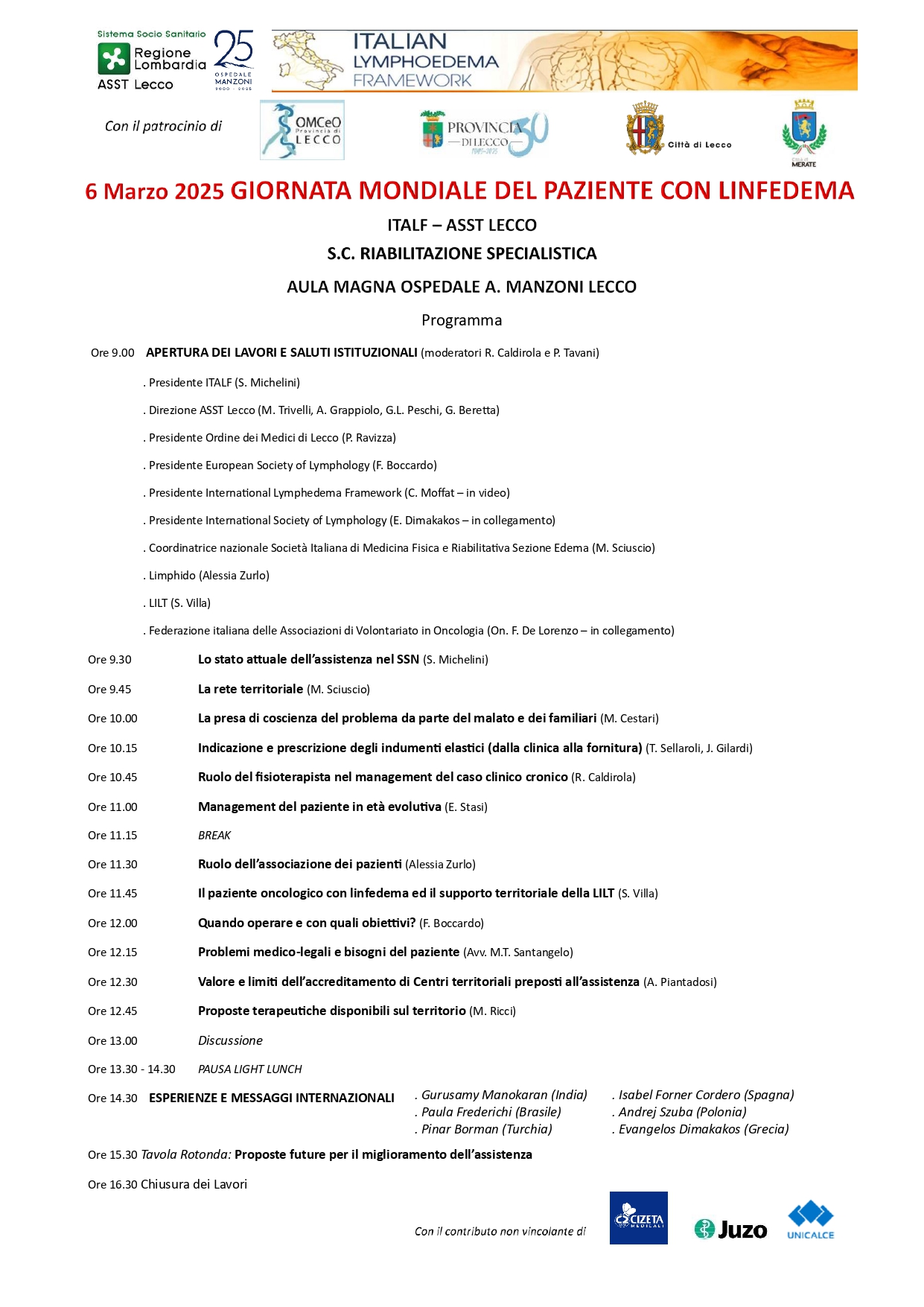 LECCO – La Giornata Mondiale del Paziente con Linfedema si celebra il 6 marzo. Si tratta di una patologia spesso trascurata, che rischia di non essere diagnosticata correttamente o trattata adeguatamente. In occasione di questa ricorrenza, ITALF (Italian Lymphedema Framework) organizza un evento informativo giovedì 6 marzo, dalle 9 alle 16:30, presso l’Aula Magna dell’Ospedale A. Manzoni di Lecco. L’evento, ad accesso libero, è rivolto a operatori sanitari, medici di base, pazienti e associazioni, e vedrà la partecipazione di esperti nazionali e internazionali.
