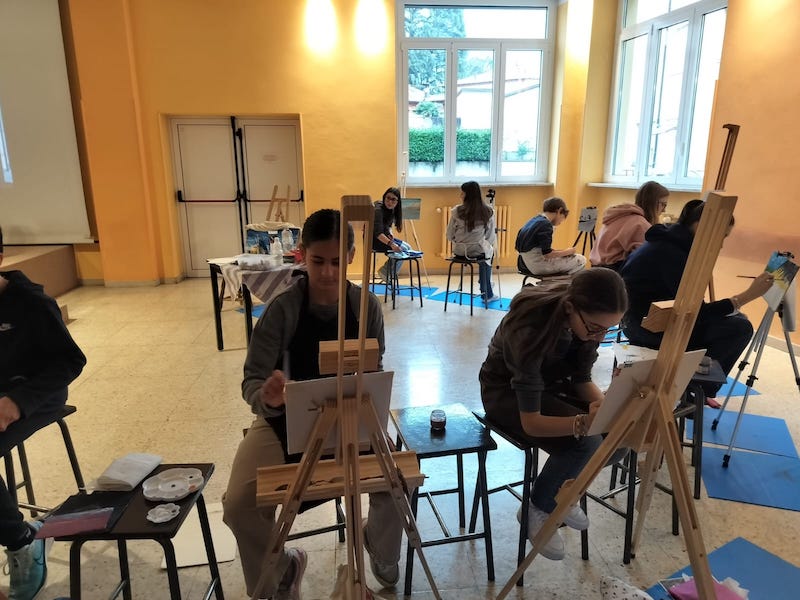 Inoltre, per il pubblico è un’occasione imperdibile per apprezzare il talento degli studenti e per riflettere sull’importanza dei contesti e delle emozioni che hanno mosso gli animi delle più prestigiose penne della letteratura italiana. Fin dai primi appuntamenti è stato possibile toccare con mano la grande serietà e il coinvolgimento degli alunni nel mettersi in gioco tra di loro e con i partecipanti, sia sul palco che di fronte ai cavalletti. Ogni opera letteraria raccontata al momento, così come gli elaborati di pittura su tavola eseguiti contemporaneamente, permettono di evocare visioni personali e critiche in entrambe le aree disciplinari e di affermare con forza e chiarezza l’efficacia dei metodi di insegnamento umanistico, anche nell’incontro di profili letterari e tecniche artistiche legate alla tradizione. I partecipanti hanno così l’opportunità di immergersi in un mondo di colori e parole che narrano storie di uomini e luoghi che rappresentano la nostra identità.
