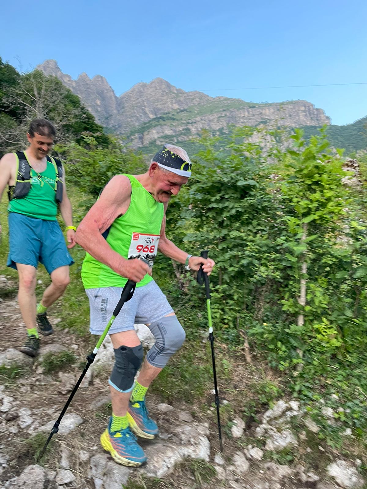 Lo abbiamo incontrato per un caffè dal Toni, al bar della partenza della funivia dei Piani d’Erna, accompagnato dai nipoti Noemi e Samuele (il terzo nipote, Marco, era assente perché all’estero per motivi di lavoro). Seduto al tavolino, lo sguardo vivace e la memoria lucida, Severino ripercorre senza enfasi una vita spesa sui sentieri. “La Resegup l’ho fatta tre volte l’ultima nel 2022. In gioventù ho fatto gare di regolarità, ho fatto tutte le edizioni dell’allora trofeo Vidini (oggi Vertical della Grignetta, ndr) e sono stato anche in spedizione in Perù con Mario Corti e Pino Negri sul Nevado Pisco (5.760 m) montagna situata nella Cordillera Blanca”.