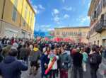 Un migliaio di persone si sono ritrovate in Piazza Diaz, di fronte al Comune, nel giorno di un nuovo sciopero generale indetto dai sindacati: tanti lavoratori, rappresentanti del mondo scolastico, politico, associativo, ma anche tanti giovani. Una ‘distesa’ pacifica di volti e colori, in alto le bandiere del sindacato, della pace e della Palestina.