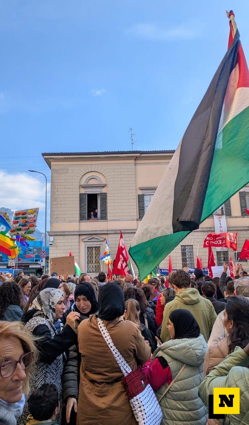 Durante la mattinata hanno preso parola i diversi rappresentanti sindacali di categoria e anche due studentesse del Liceo Artistico Medardo Rosso. Poco prima delle 11 anche il sindaco di Lecco, Mauro Gattinoni, ha portato un suo saluto alla piazza, affacciandosi dalla finestra del suo ufficio a Palazzo Bovara dove, tra gli applausi, ha esposto una bandiera palestinese.