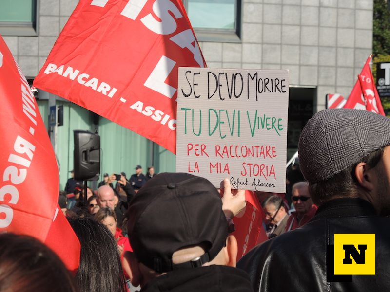 “Da questa piazza oggi vogliamo ricordare che il lavoro non è solo produzione, ma è dignità, partecipazione e impegno per il bene comune – ha continuato Riva – quando milioni di lavoratrici e lavoratori si fermano, lo fanno per affermare che nessuna economia può dirsi giusta se poggia sull’oppressione di altri popoli. E questo sciopero ci ricorda che il lavoro, quando è unito, può cambiare la storia. La forza di questa giornata sta proprio nella capacità delle lavoratrici e dei lavoratori di trasformare la propria indignazione in azione concreta. E’ da questa forza comune che nasce la nostra convinzione più profonda: il lavoro senza diritti non è libertà. Perché, come ricordava Gino Strada, “i diritti degli uomini devono essere di tutti gli uomini, proprio di tutti, sennò chiamateli privilegi”. Da qui, da questa piazza, parte un messaggio forte: non ci fermeremo. Finché la comunità internazionale non assumerà pienamente le proprie responsabilità: nel far rispettare il diritto internazionale, nel difendere la dignità umana e nel costruire un futuro di pace e giustizia”.