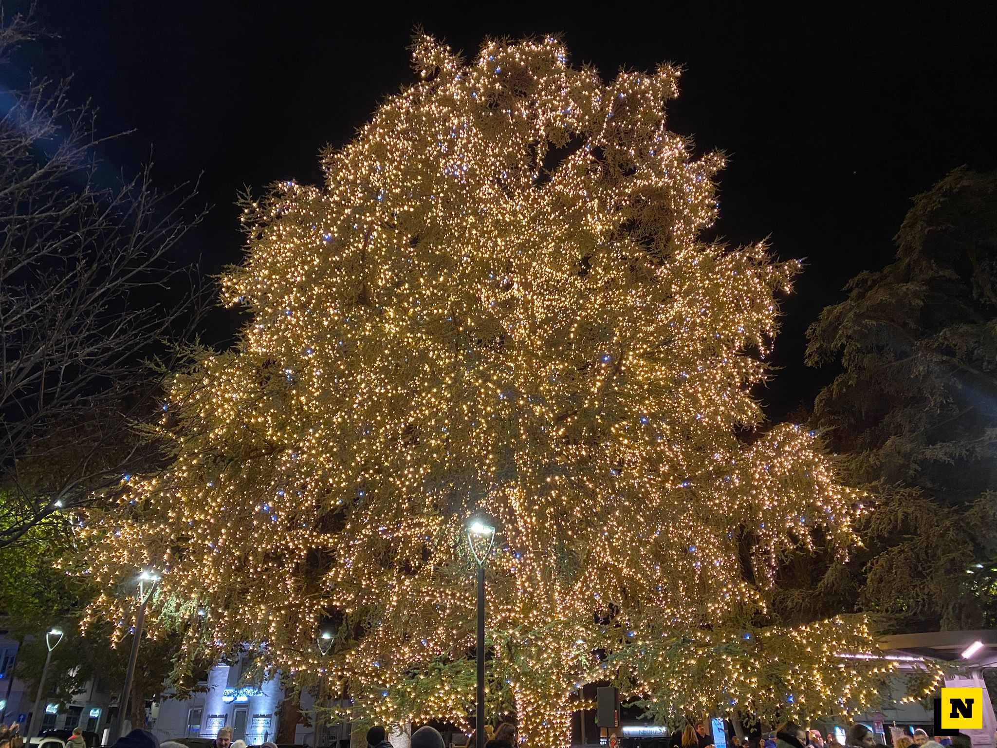 Lo storico cedro addobbato anche quest’anno da Ltm con 8 km di luminarie