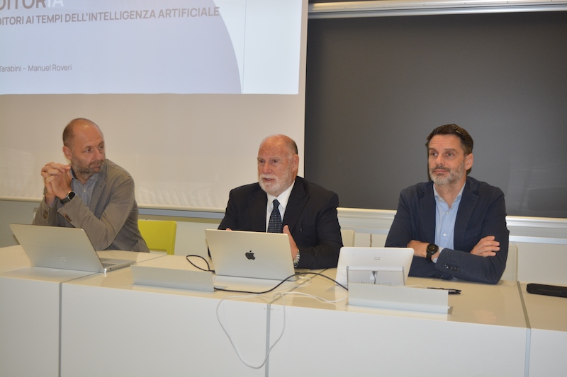 Manuel Roveri (Professore Ordinario del Politecnico di Milano – Dipartimento di Elettronica, Informazione e Bioingegneria) e Marco Tarabini (Professore Ordinario del Politecnico di Milano – Dipartimento di Meccanica) sono partiti da 3 numeri: 13 milioni, ovvero le persone che usano IA in Italia; 3%, ovvero la percentuale dei dati effettivamente acquisiti e usati; 73%, pari al numero di lavoratori che utilizzano il proprio account in azienda. Quindi hanno delineato i tratti salienti dell’intelligenza artificiale cercando di smontare falsi miti. Partendo dall’AI che usiamo – dagli assistenti vocali come Alexa o Siri alle raccomandazioni (Netflix, Amazon) passando per chatbot e assistenti digitali, traduttori automatici o generatori di testi/immagini – i due docenti hanno evidenziato fattori abilitanti e contesto che hanno favorito la diffusione di questo strumento, suggerendo anche una possibile “cassetta degli attrezzi” e mostrando diverse tipologie/aree di intervento (regressione, classificazione, clustering, predizione, anomaly detection, generative AI): “L’intelligenza artificiale è un sistema che fa cose diverse. Per avere vantaggio competitivo serve scegliere ambiti su cui puntare e in cui investire. Sapendo che il sistema è in continua evoluzione”. Tra gli aspetti centrali il valore del dato (dal rilevamento alla disponibilità passando per la gestione), la centralità dell’addestramento del modello adottato, l’importanza di avere chiari gli obiettivi da raggiungere. “Bisogna puntare sulla ottimizzazione delle operazioni a basso valore aggiunto: con AI si libererà il 30 per cento del tempo di lavoro, che andrà investito in altri ambiti. Però la premessa è che l’imprenditore deve crederci”. L’ultima parte della prima sessione è stata dedicata alla IA generativa ovvero quella branca che crea nuovi contenuti originali. Molte le domande suscitate: fino a dove ci si può spingere? Quali sono i limiti etici e legali? Quale sarà il futuro dell’uomo?