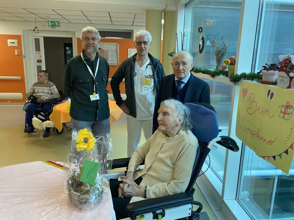 Ha ricevuto gli auguri dal Presidente degli istituti Giuseppe Canali, dalla Vicepresidente Rosaria Bonacina, dal Direttore sanitario dott. Andrea Millul, dal medico di reparto dott. Roberto Spini e da tutto il personale di cura.