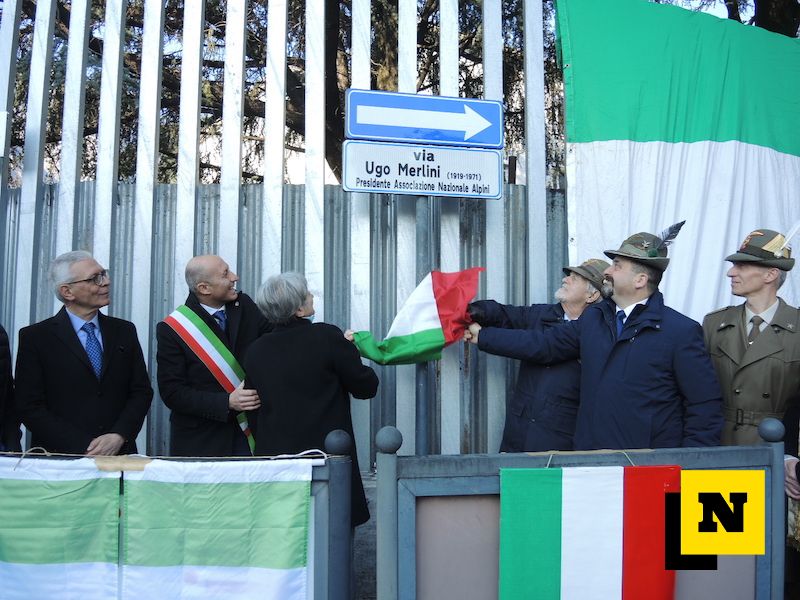 “Grazie per avere dedicato questa via a uno dei nostri, uno di noi – ha aggiunto con emozione Sebastiano Favero – Ugo Merlini ha avuto la forza di ‘tornare alla baita’, come diciamo noi Alpini. Ci ha lasciato segni di memoria, valori e solidarietà, di cui oggi abbiamo bisogno più che mai. Ai miei Alpini, dico: non dobbiamo avere paura, non esiste l’impossibile per noi ed è fondamentale trasmettere questo saper fare alle giovani generazioni”.