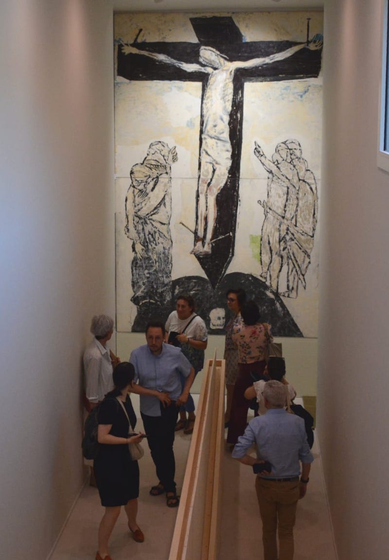L’evento è stato presentato da mons. Bortolo Uberti, prevosto di Lecco: “Una crocifissione bianca, una via di salvezza. Oggi stiamo compiendo un gesto quasi “liturgico”, inaugurare un quadro prima degli arredi perché non è elemento di arredo: è importante dire che il nuovo oratorio parte da qui, inizia con il segno della croce. Un ringraziamento al donatore, l’autore Giuliano Collina, Fondazione Cariplo e quanti stanno rendendo possibile questi lavori”.