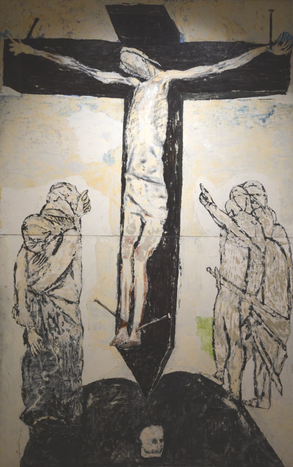 LECCO – Venerdì 13 giugno la ‘Crocifissione bianca’ di Giuliano Collina ha trovato la sua nuova collocazione nel nuovo oratorio del centro di Lecco, sulla grande parete che sovrasta la rampa di collegamento dei due piani della struttura.