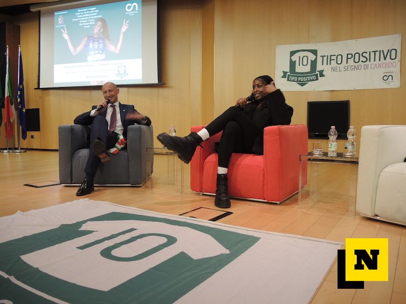 LECCO – La passione per lo sport, i sogni, i sacrifici, i momenti difficili ma anche l’importanza di riuscire a realizzarsi senza ‘perdersi di vista’. La pallavolista lecchese Miriam Sylla, oro alle Olimpiadi di Parigi la scorsa estate, ha incontrato gli studenti questa mattina, mercoledì, nell’ambito del progetto Io Tifo Positivo, promosso da Comunità Nuova in collaborazione con il Comune di Lecco per diffondere tra i giovani i valori dello sport.