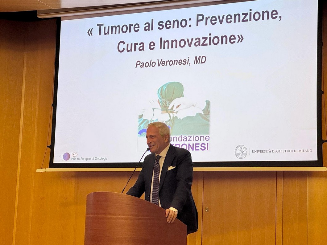 Per il secondo anno consecutivo, l’associazione sta finanziando interamente una borsa di studio per un ricercatore di Fondazione Umberto Veronesi. Ospite di rilievo della serata il Professor Paolo Veronesi, Presidente di Fondazione Umberto Veronesi ETS, Direttore della Divisione di Senologia Chirurgica presso l’Istituto Europeo di Oncologia di Milano e Professore Ordinario di Chirurgia all’Università degli Studi di Milano. Con un quadro chiaro e aggiornato, ha illustrato l’attuale situazione del tumore al seno in Italia e ribadito come la prevenzione rimanga l’arma più efficace, ricordando che non sempre i fattori di rischio sono modificabili, ma una parte significativa può essere ridotta attraverso scelte quotidiane più sane, adesione agli screening e diagnosi tempestiva. Ha inoltre evidenziato i progressi ottenuti negli ultimi anni, sia nell’ambito terapeutico sia sul fronte chirurgico, dove oggi si adottano procedure meno invasive e più rispettose della qualità della vita.