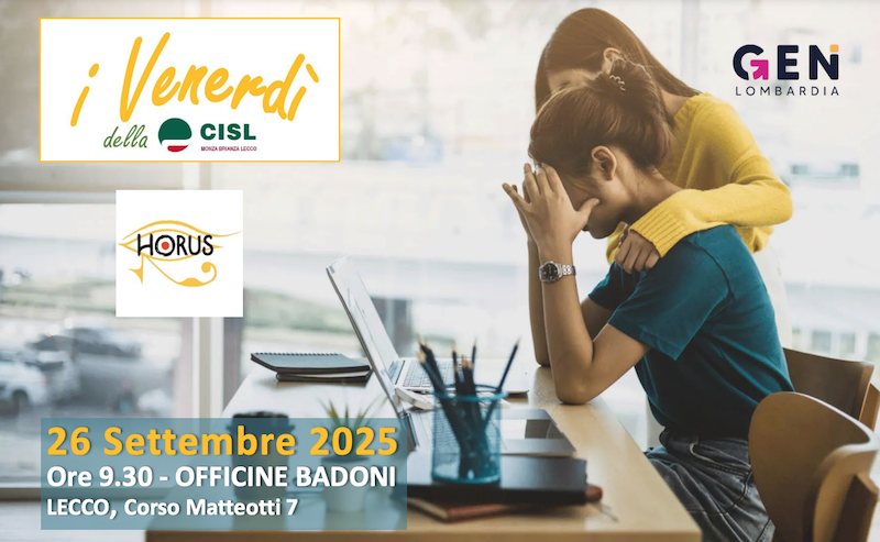LECCO – È la salute mentale dei lavoratori il tema al centro del dibattito del seminario organizzato dalla CISL Monza Brianza Lecco e Horus Club per venerdì 26 settembre alle ore 9.30 alle Officine Badoni di Lecco.