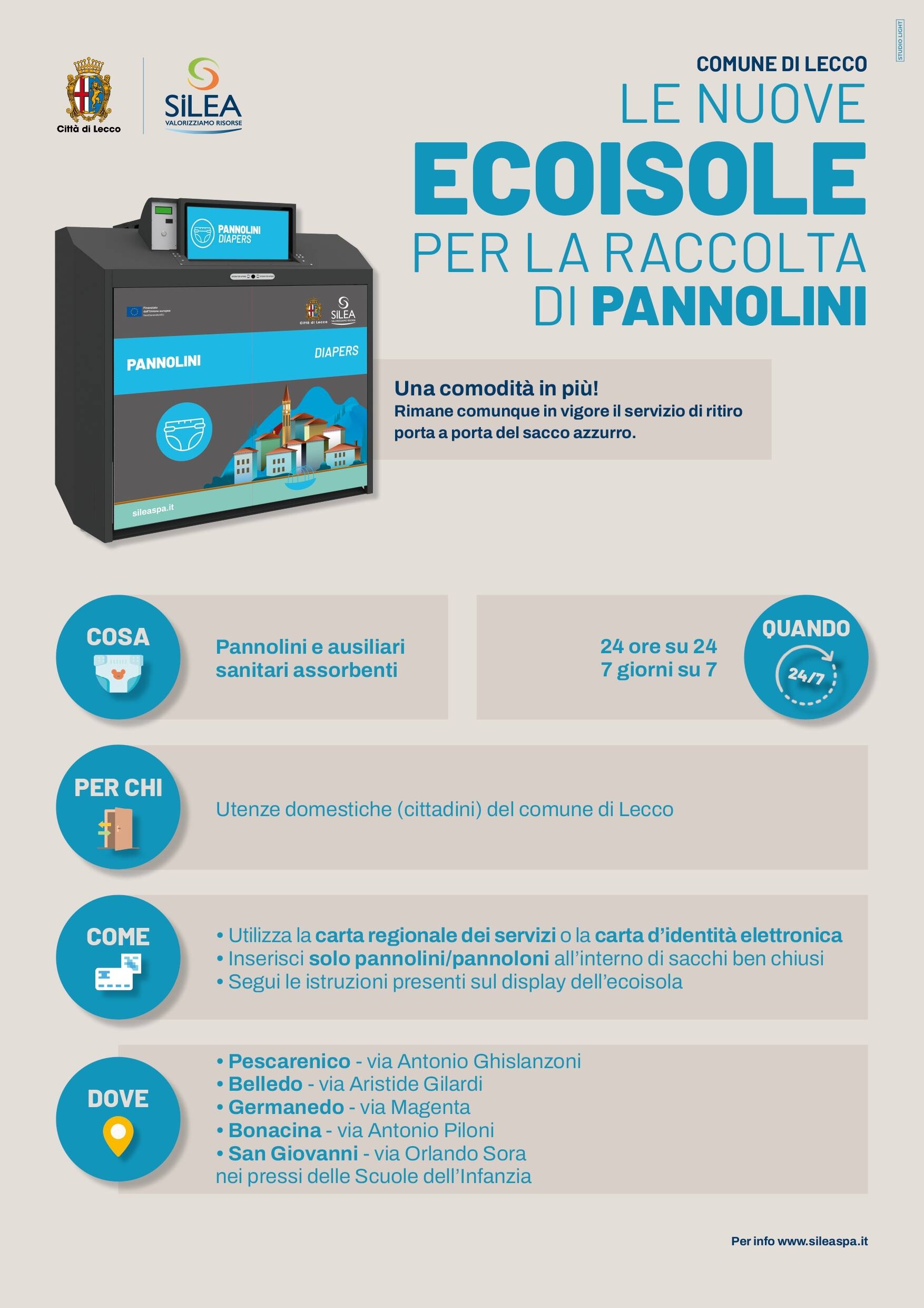 LECCO – Sono state attivate le nuove ecoisole informatizzate per la raccolta differenziata dei piccoli elettrodomestici e dei pannolini, inclusi gli ausiliari sanitari assorbenti come i pannoloni. Una novità concreta, voluta dal Comune di Lecco in collaborazione con Silea, che punta a facilitare il conferimento di questi rifiuti senza gravare ulteriormente sulle famiglie.