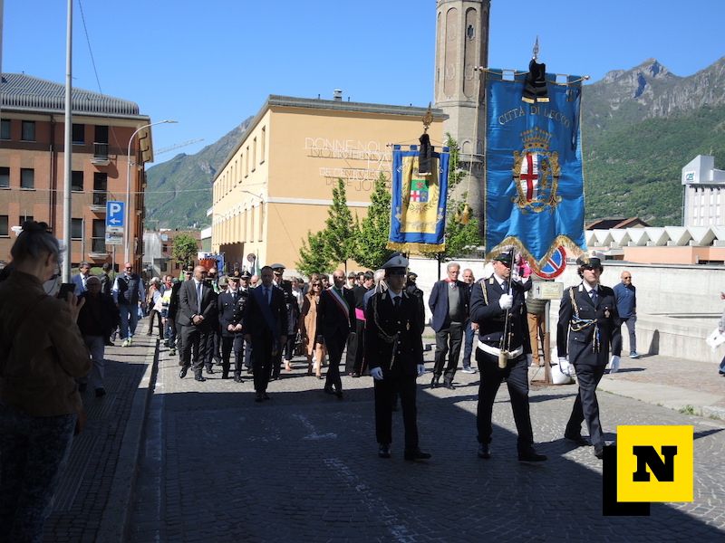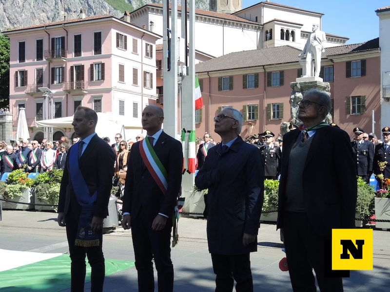 In tantissimi questa mattina, venerdì, hanno preso parte alle celebrazioni dell’80esimo anniversario della Liberazione: dopo la Santa Messa in Basilica il corteo di istituzioni e cittadini ha attraversato le vie del centro, fermandosi in Largo Montenero, presso il monumento ai Caduti lecchesi nella lotta per la Liberazione, e poi presso il Municipio dove è stato letto il decreto del 1974 che proclamò la città Medaglia d’Argento al valor militare proprio per la ‘Lotta di Liberazione’.