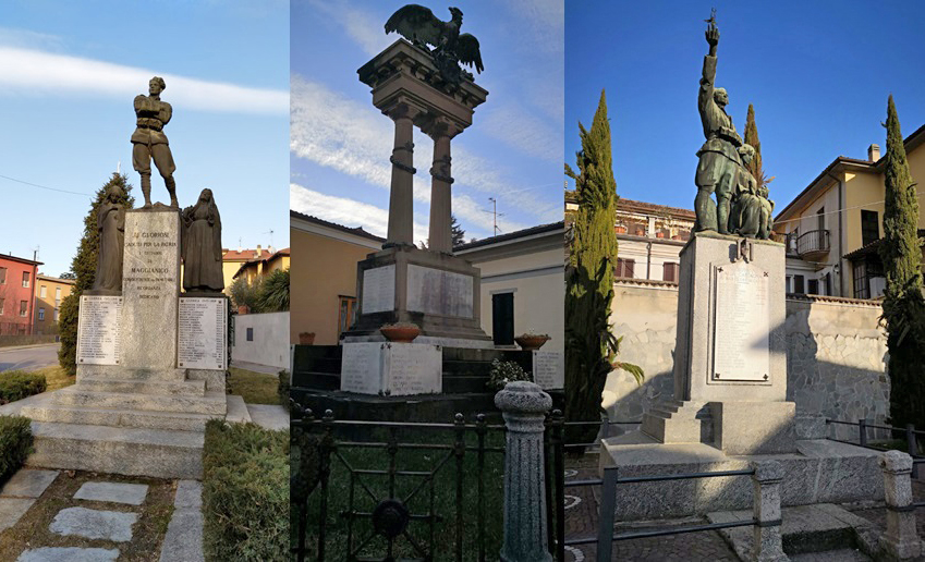 Si tratta dei Monumenti dedicati ai caduti della Grande Guerra a San Giovanni alla Castagna in piazza Felice Cavallotti, Maggianico in via Gaudenzio Ferrari e a Castello in piazza Antonio Dell’Oro. A questi si aggiunge il restauro del monumento dedicato a Mario Cermenati, sito nell’omonima piazza .