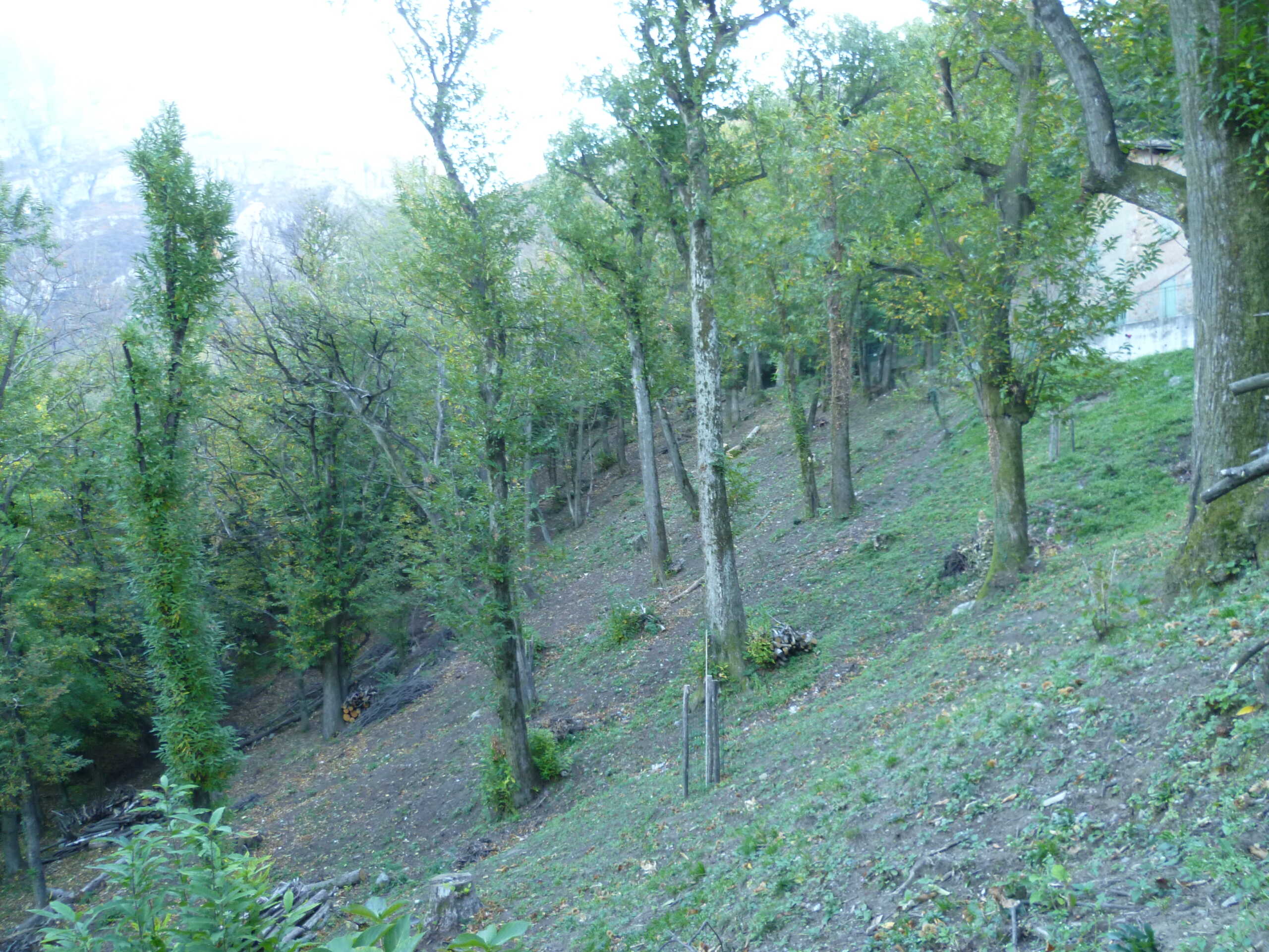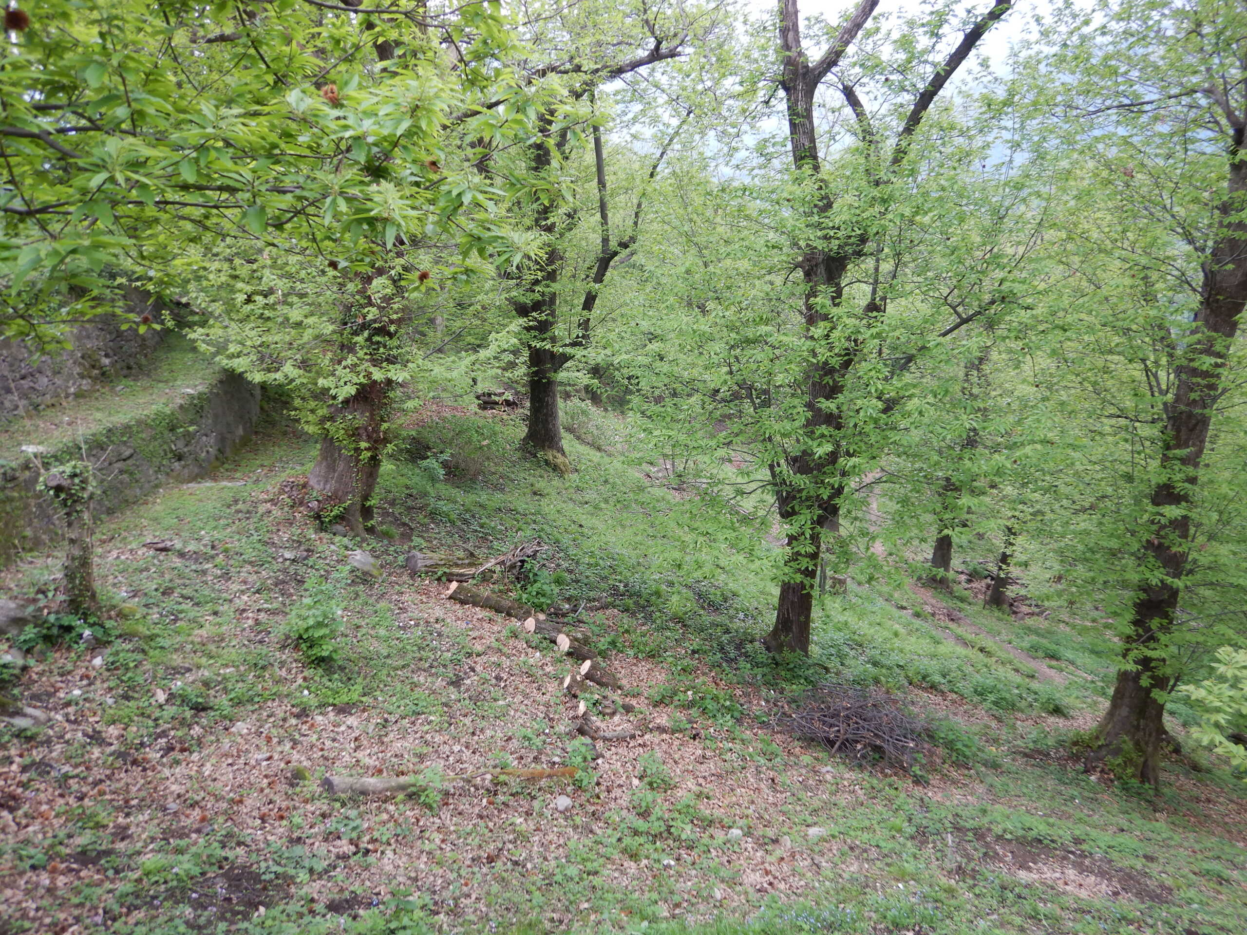 Nelle foto sopra, il castagneto di Campo de Boi prima dell’intervento
