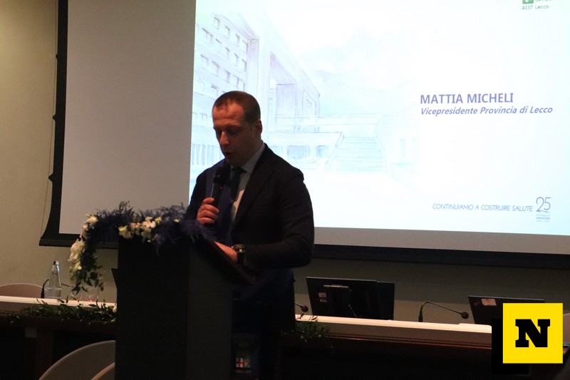 Mentre Mattia Micheli, vicepresidente della Provincia di Lecco, sottolinea “l’importanza della collaborazioni fra enti del territorio” e anticipa un altro anniversario – quello dei 30 anni della Provincia – che ricorrerà il prossimo maggio; è il sindaco Mauro Gattinoni a soffermarsi sui volti lecchesi che hanno fatto la storia dell’ospedale Manzoni. “Nel 2000 facevo il giornalista – spiega il primo cittadino – e scrivevo dell’architetto Aurelio Gorgerino, progettista dell’ospedale. Ci portava in cantiere ed era fissato dalla forma quadrangolare – dalla piastrella, alle piazze interne, fino al quadratone dell’intero stabile -, era fissato con il colore della roccia della montagna. E’ una cura spettacolare quella che ha dedicato a questa struttura. L’altro nome è sicuramente Roberto Rotasperti, il primo Direttore generale, studiò i migliori esempi della sanità europea per dare a Lecco l’eccellenza. L’ultima persona che voglio citare è monsignor Busti, che insistette per avere la cappella nel centro dell’ospedale, voleva che la struttura oltre a tecnologia e cura, fosse centro di umanità”.