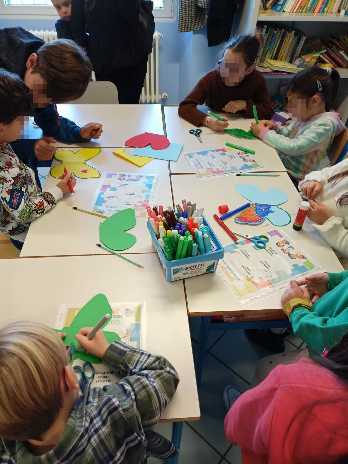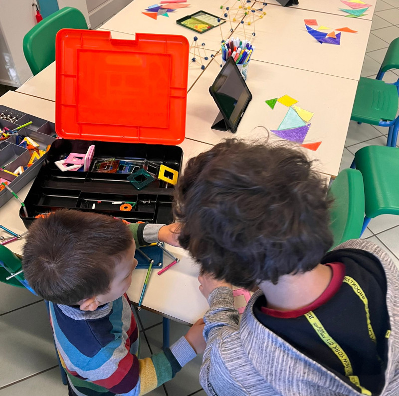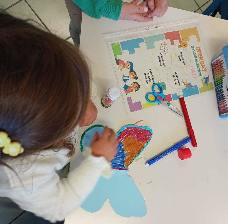 Nell’aula STEM, invece, la creatività ha preso forma con le figure colorate costruite grazie a GEOMAG e TANGRAM, mentre l’aula artistica si è trasformata in un piccolo atelier, dove ciascun bambino ha realizzato una farfalla unica, simbolo della loro immaginazione.