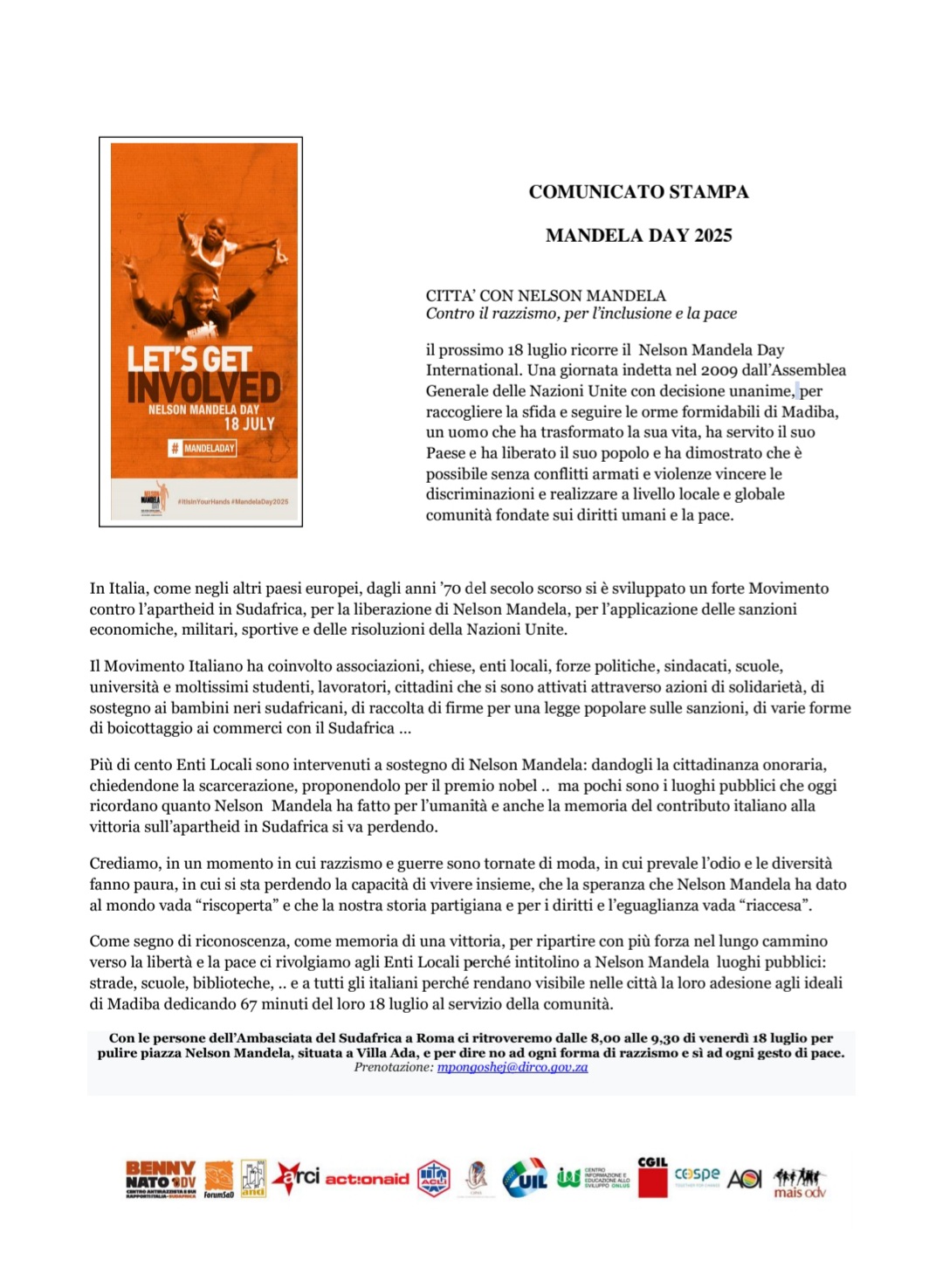 Una giornata particolare dove a Roma è in altre città d’Italia si festeggia il Mandela Day contro il razzismo, per l’inclusione e la pace.