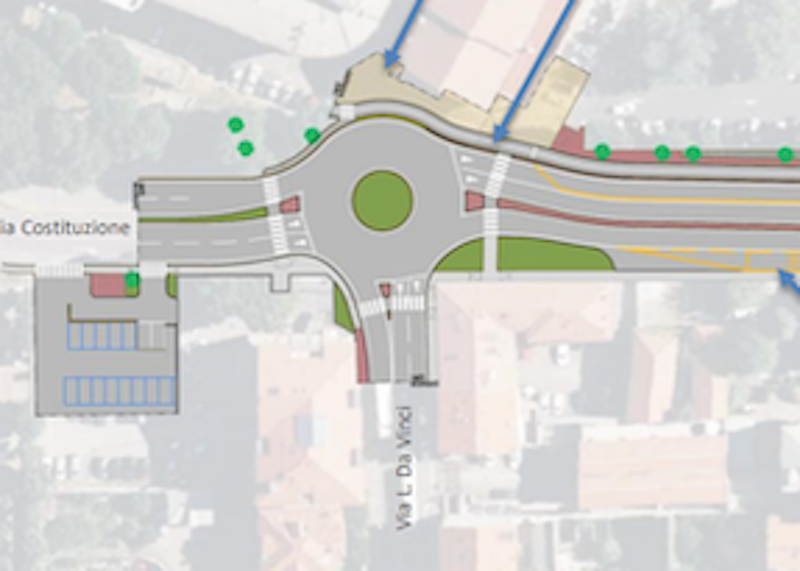 In via Leonardo da Vinci, invece, sarà chiuso l’attuale sottopasso pedonale, completamente inutilizzato: al suo posto verrà realizzato un attraversamento in superficie che permetterà di guadagnare spazio e ampliare il raggio della rotatoria, che passerà da 24 a 31 metri di diametro esterno.