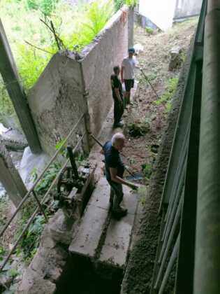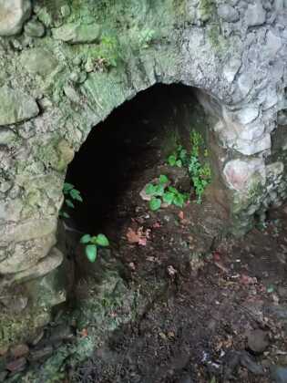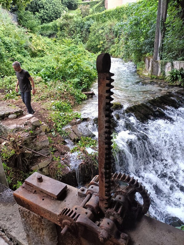 Ora visibili il vecchio muro di sostegno del soprastante passaggio pedonale e la bella galleria di scarico della derivazione del Gerenzone