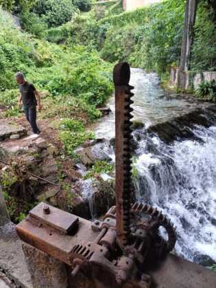 Sotto le oramai rodate ramazze e cesoie dei volontari di Officina Gerenzone hanno ritrovato respiro non solo il camminamento sottostante il ponte di via Oslavia (passaggio non particolarmente felice da percorrere, soprattutto in orario notturno) ma soprattutto il tratto iniziale del canale con le due grandi chiuse ancora in buon essere. La roggia così ripulita ha rivelato dettagli molto interessanti come il vecchio muro di sostegno del soprastante passaggio pedonale, dove a sorpresa si rivela la bella galleria di scarico della derivazione del torrente Gerenzone che dava moto all’impianto del grande cotonificio fondato tra il 1811 e il 1814 dall’imprenditore strasburghese Federico Schmutz, in seguito pervenuto ai Grassi, ai Fritsch e ai Sangregorio.