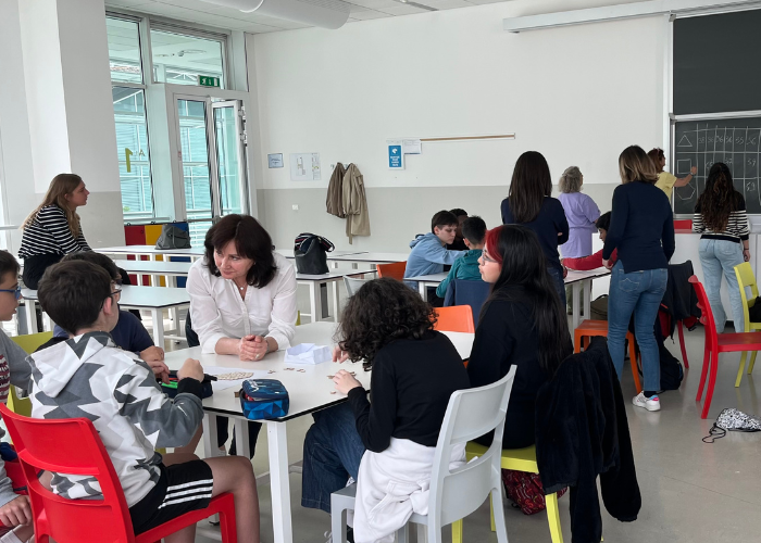 La struttura del laboratorio ha previsto tre attività pratiche svolte in piccoli gruppi, durante le quali gli studenti hanno costruito manufatti da riportare nelle classi. La prima attività consisteva nell’introduzione all’uso del design, dell’origami e della matematica per risolvere problemi tecnologici, con la realizzazione di un prototipo di stent cardiaco in carta. La seconda attività si è concentrata sulla matematica delle api, affrontando la tassellazione del piano e alcuni problemi isoperimetrici. Infine, la terza attività ha coinvolto gli studenti in un gioco a squadre che ha permesso di esplorare i concetti geometrici in modo interattivo e coinvolgente e, allo stesso tempo, di coltivare abilità cognitive essenziali. Attraverso il pensiero strategico e il ragionamento spaziale, i giocatori hanno imparato a destrutturare geometrie complesse, affinando la loro capacità di visualizzare e comprendere le relazioni geometriche fondamentali.
