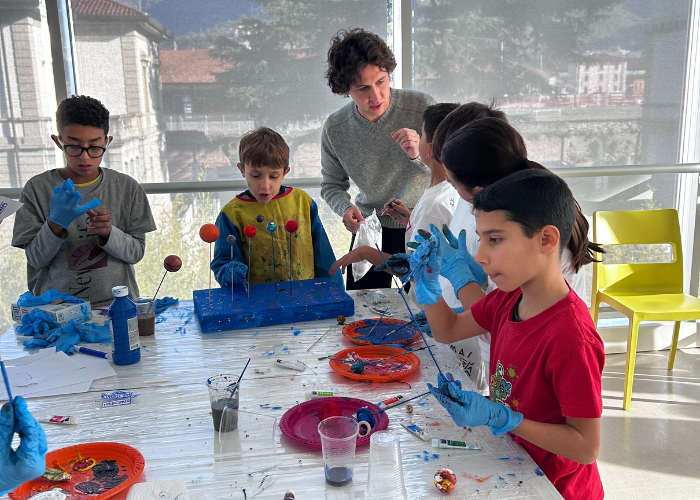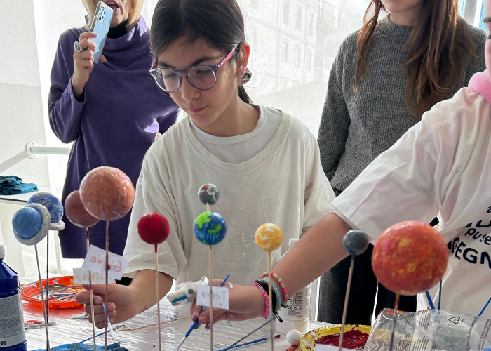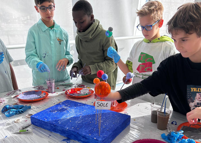 La parte più creativa dell’incontro ha riguardato il laboratorio “Officina del Sistema Solare”, in cui ciascun partecipante ha realizzato un modellino del Sistema Solare utilizzando un kit didattico composto da palline di polistirolo, stecchini e colori a tempera. Questa attività manuale ha permesso ai bambini di visualizzare concretamente la disposizione dei pianeti e di comprendere meglio le distanze e le interazioni che ne regolano il moto attorno al Sole.