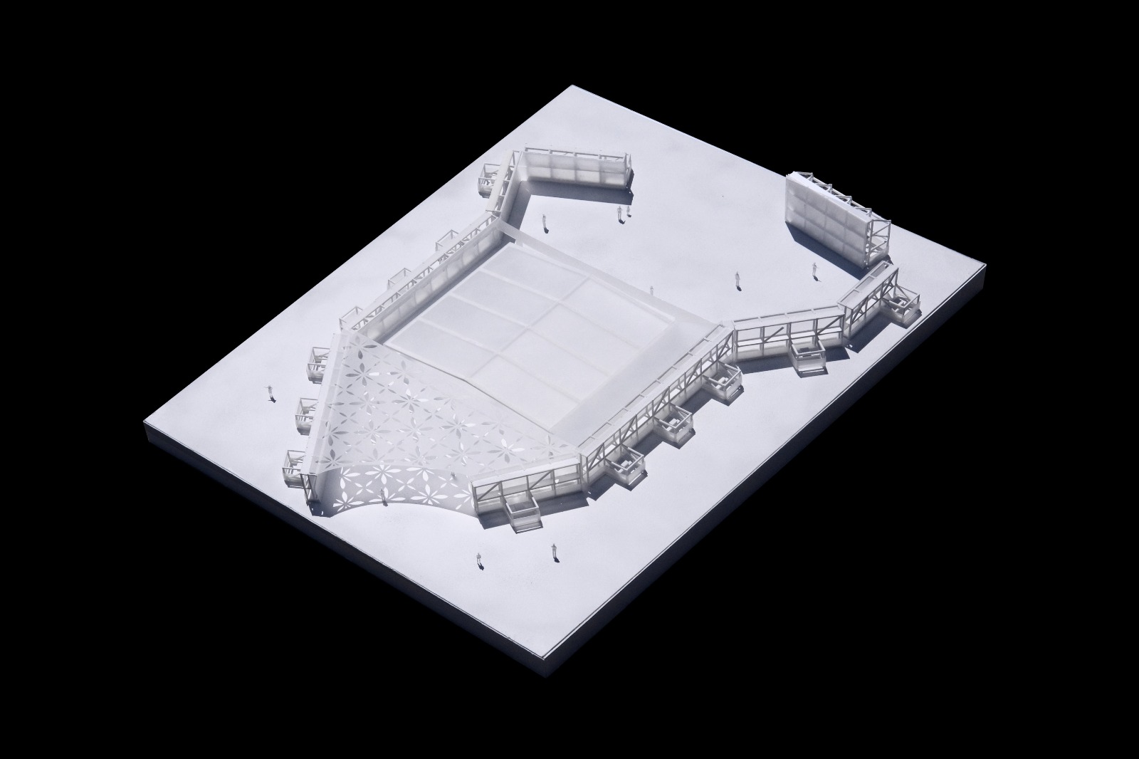 Il progetto “RECycled Pavilion” ha portato alla progettazione e realizzazione di un padiglione effimero per il REC Festival di Concepción, il più importante evento musicale gratuito del Cile. L’iniziativa è stata sviluppata in collaborazione con la Universidad del Desarrollo e il Teatro Bio Bio, integrando sostenibilità, riuso e coinvolgimento delle comunità locali, con un approccio educativo sperimentale che fonde la tradizione accademica cilena con le competenze progettuali e costruttive europee. Fondato sui principi di circolarità, modularità e inclusività, il padiglione si ispira alla figura della jaiba (granchio), animale simbolico della costa cilena.