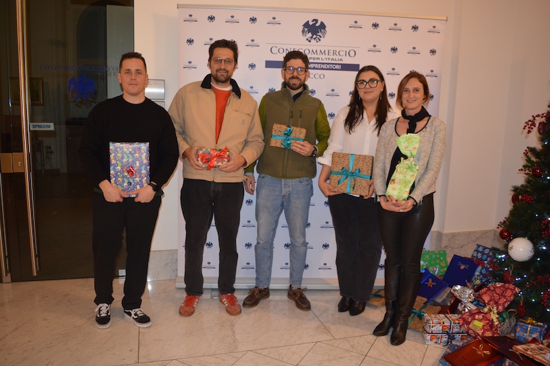 Venerdì 12 dicembre, in occasione del tradizionale momento conviviale per ringraziare tutti dei doni ricevuti e per scambiarsi gli auguri, numerose persone sono entrate nella hall dell’associazione per portare un dono e per un saluto. Tra questi il vicepresidente di Confcommercio Lecco, Angelo Belgeri, il past president di Confcommercio Lecco, Peppino Ciresa, il consigliere Lucio Corti e la presidente del Gruppo Mobili e arredamenti Simona Bonaiti. Presente al gran completo il Direttivo del Gruppo Giovani di Confcommercio Lecco: il presidente Mattia Maddaluno, il vicepresidente Nicolò Gerin e i consiglieri Francesca Maggi (anche presidente della Fnaarc Lecco), Giulia Fasoli, Mattia lunghi e Fabio Porchia.