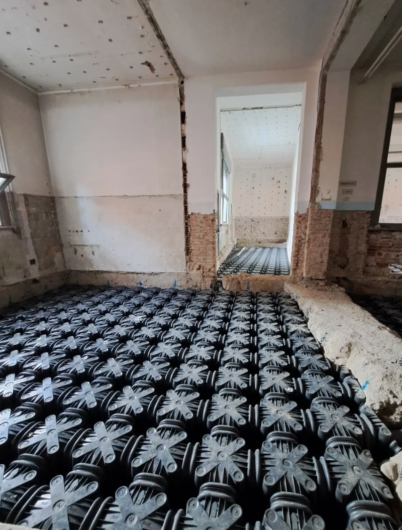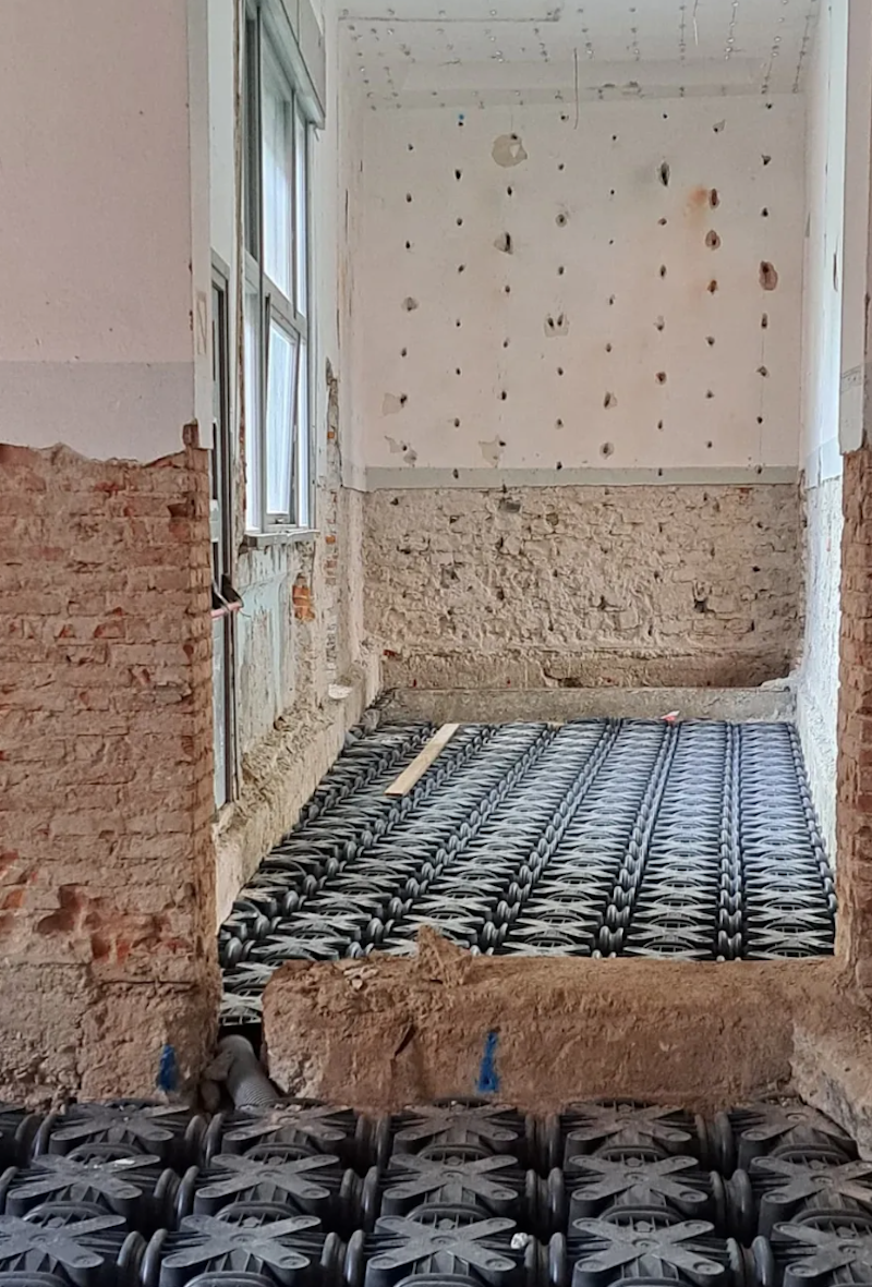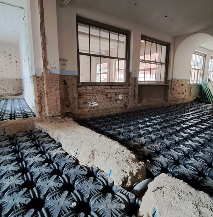 “Nei giorni scorsi – fa sapere l‘assessore ai Lavori Pubblici Maria Sacchi – è stato realizzato il vespaio con igloo, soluzione prima assente nell’edificio, che consente di creare una camera d’aria tra terreno e soletta migliorando l’isolamento termico e risolvendo problemi di umidità. Al piano terra si è provveduto a realizzare l’armatura e la gettata per la nuova soletta ed è stata anche rimossa la copertura”.