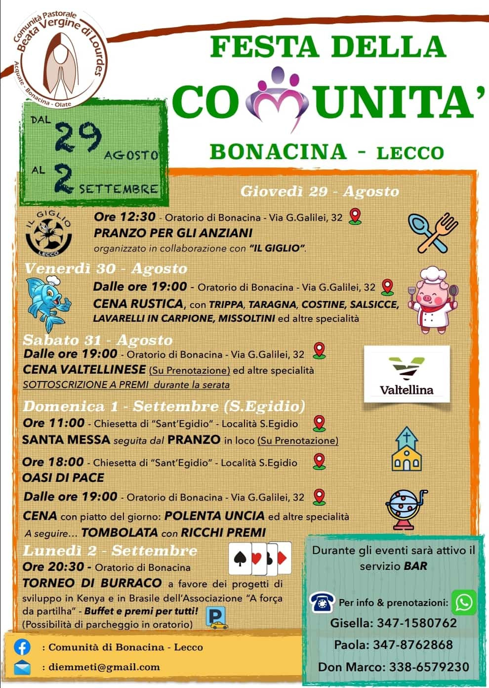 A Bonacina la Festa delle Comunità dal 29 agosto al 2 settembre.