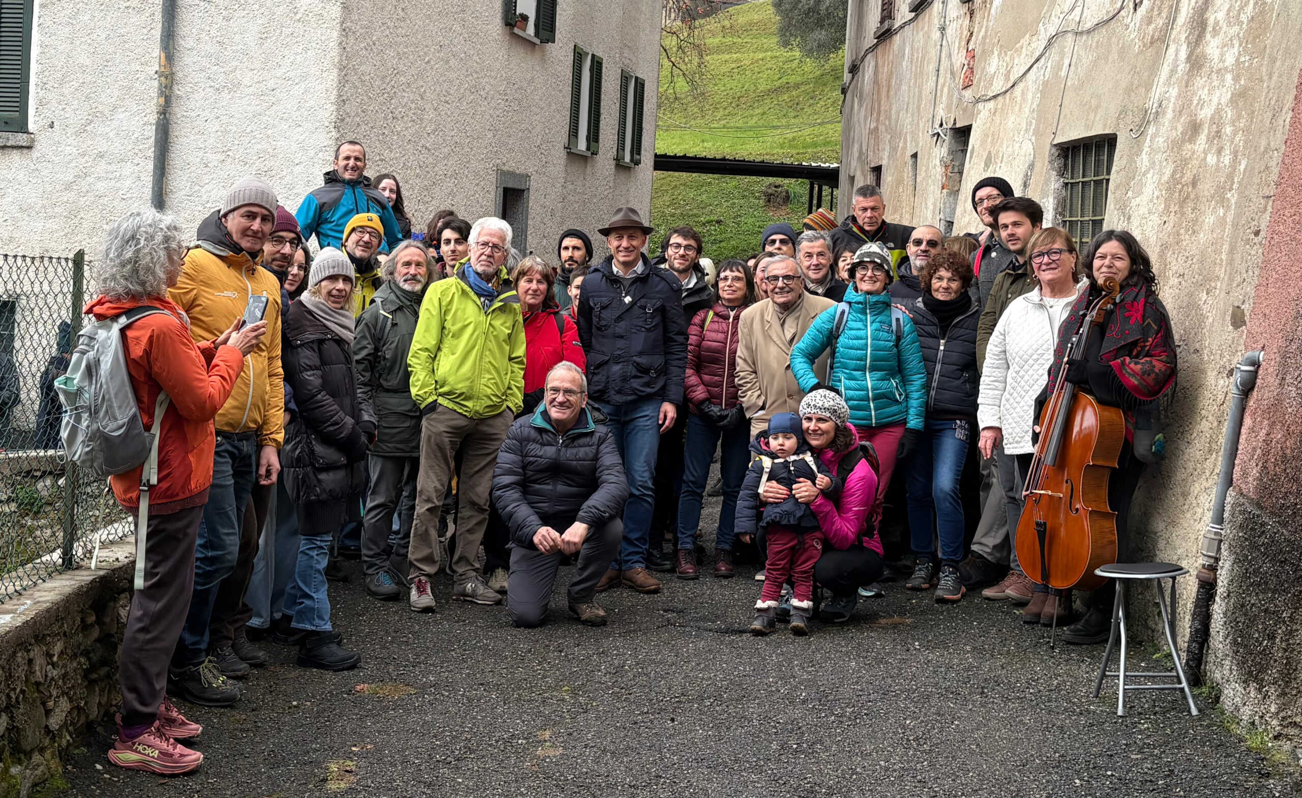 La tappa conclusiva della scampagnata ha portato i partecipanti nella parte antica del nucleo rurale di Cavagna, dove Maria Antonietta Puggioni ha eseguito un brano al violoncello, creando un momento di forte intensità emotiva davanti a una casa storica, originariamente appartenuta ai Valsecchi. La dimora, sistemata nel 1775, era di proprietà di Pietro Valsecchi, mercante che, secondo alcuni atti storici, intratteneva affari con Pietro Manzoni, padre di Alessandro Manzoni, a testimonianza del legame che univa le famiglie e le vicende del territorio.