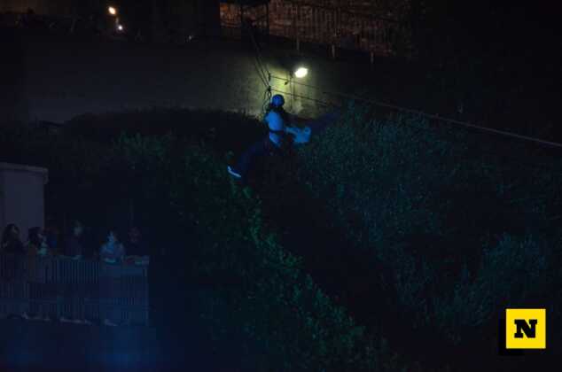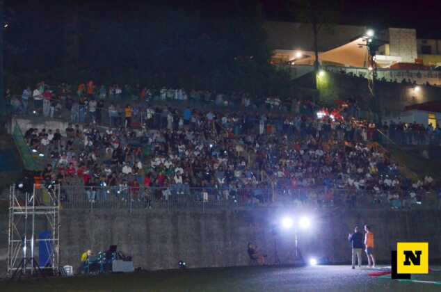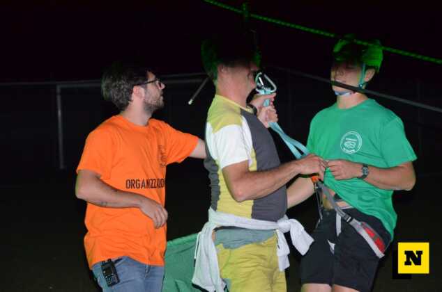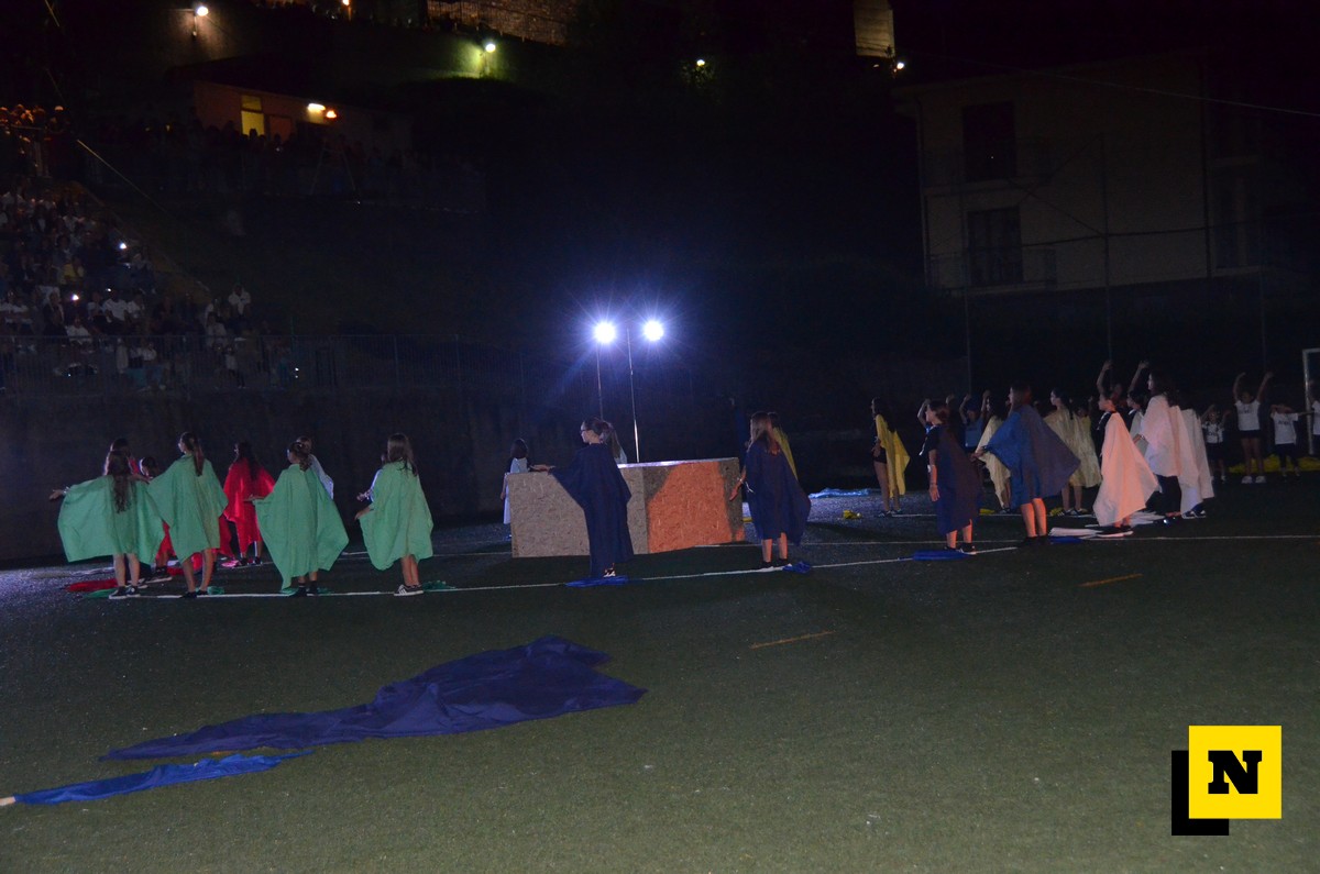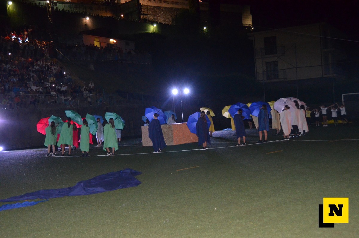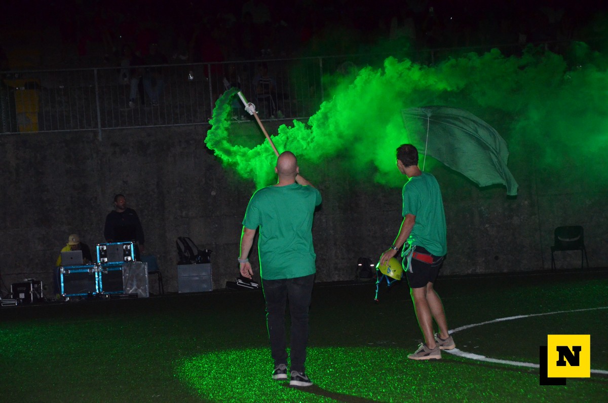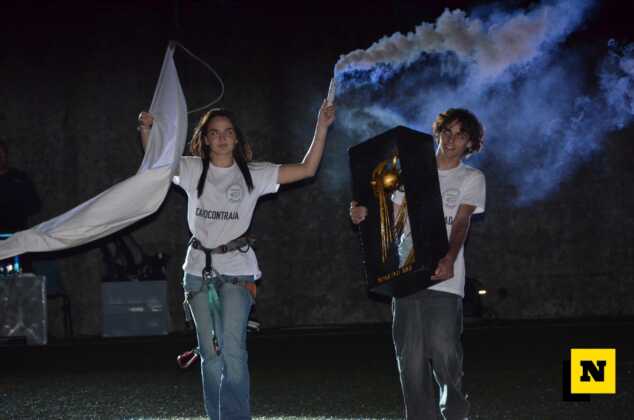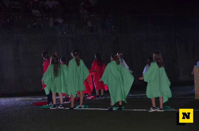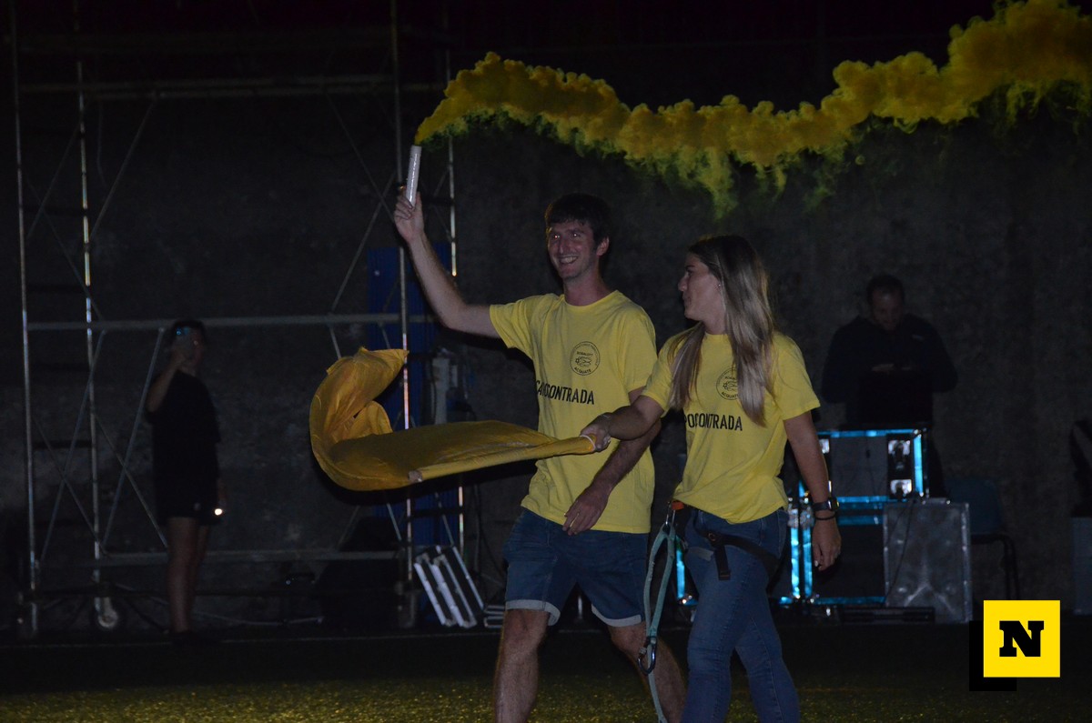 Come detto, uno dopo l’altro, i capicontrada hanno fatto il loro ingresso in campo calati dall’altro con una carrucola per poi compiere il rituale giro di campo con la bandiera della propria contrada. I Vicinali, però, avevano un “peso” in più, il trofeo vinto nella scorsa edizione… riusciranno a ma mantenere il titolo di campioni? Le sfida è aperta…