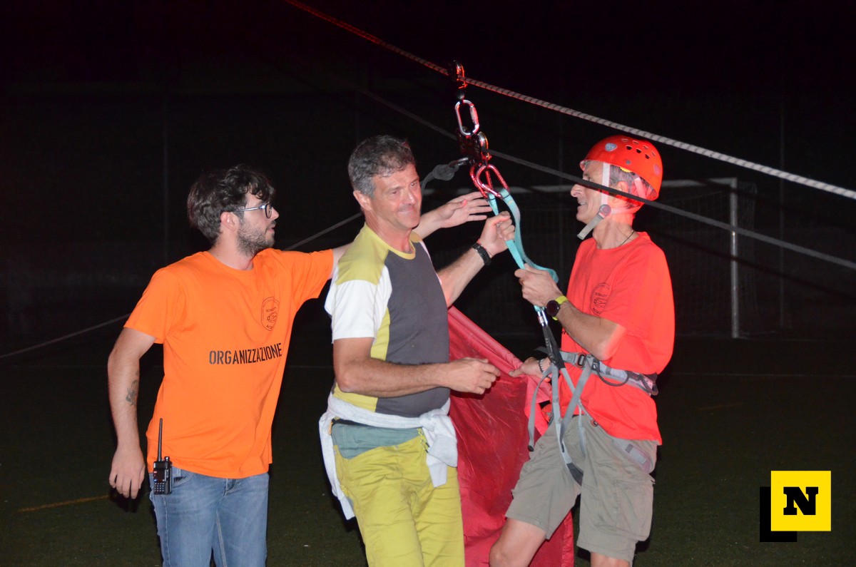 LECCO – Un inizio spettacolare, con i capicontrada che sono arrivati direttamente dal cielo, ha segnato l’inizio ufficiale dello Scigalott d’Or 2025. La cerimonia d’apertura si è svolta giovedì sera e adesso, per una decina di giorni, gli abitanti del rione di Acquate saranno divisi secondo i colori della propria contrada di appartenenza: i blu del Colongardo; gli azzurri dello Zuccarello; i verdi della Bassana, i bianchi dei Vicinali (campioni in carica), i gialli della Concezione e i rossi del Poteo.