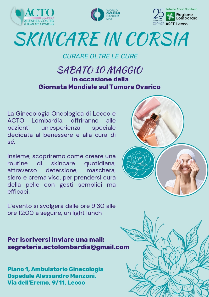 LECCO – Prendersi cura di se stessi è la pratica fondamentale per una vita sana e libera da complicazioni, ed è per questo che per il 10 Maggio, Giornata Mondiale del Tumore Ovarico, ACTO Lombardia, in collaborazione con l’ASST di Lecco, organizza per le pazienti della Ginecologia Oncologica, una giornata dedicata alla cura della pelle.