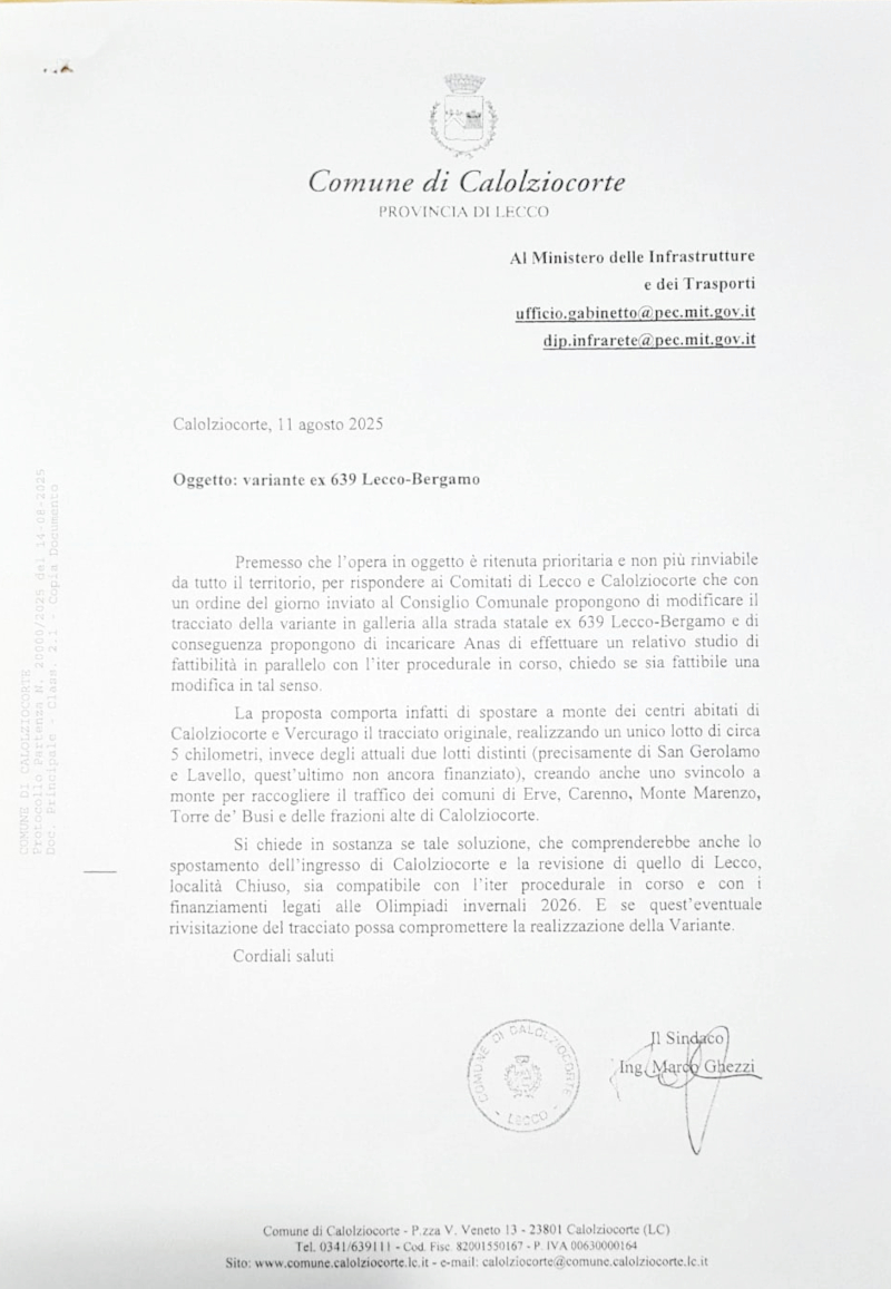 L’unico comune che ha presentato e votato l’ordine del giorno è stato Carenno, mentre Calolzio ha lo ha presentato nel consiglio comunale dello scorso luglio per poi ritirarlo con l’impegno di scrivere una lettera al Ministro delle Infrastrutture e dei Trasporti Matteo Salvini, a fronte della raccolta firme, per prendere in considerazione il cambio di tracciato senza perdere i fondi già stanziati.