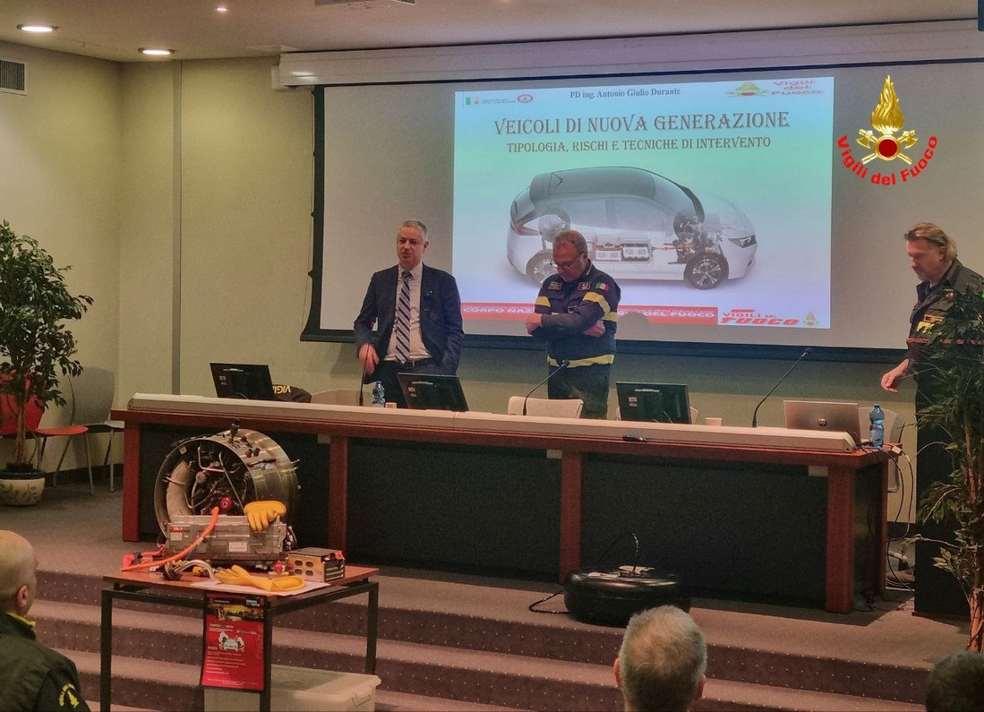 Il Comandante dei Vigili del Fuoco di Lecco, Ing. Antonio Giulio Durante, ha aperto i lavori sottolineando la necessità di aggiornare le strategie di intervento e le procedure operative alla luce delle sfide poste dall’evoluzione tecnologica dei mezzi di trasporto. Successivamente, il Direttore Coordinatore Speciale Carlo Cardinali e l’ispettore Andrea Foggetti hanno illustrato le tecniche per riconoscere le diverse tipologie di veicoli e per gestire le criticità legate alle batterie, agli incendi e ai rischi correlati ai combustibili alternativi in situazioni di emergenza.
