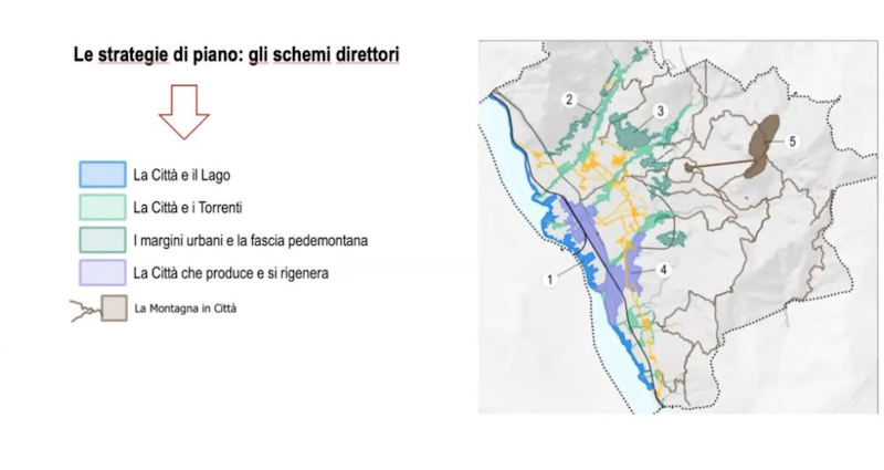 La strategia territoriale complessiva del piano si fonda su cinque “schemi direttori”: la città e il lago, la città e i torrenti, i margini urbani e la fascia pedemontana, la città che produce e si rigenera, e la montagna in città. “Questi macro-temi guidano l’organizzazione e la trasformazione urbana, in stretta relazione con le diverse tipologie di aree previste nel piano: le Aree di Trasformazione Urbana (ATU), quelle a prevalenza di suolo libero e le aree di valorizzazione paesaggistica (AVP). Ogni area è collegata in modo diretto a uno specifico schema direttore, garantendo coerenza e visione strategica”. Durante la seduta sono state infine presentate alcune schede tipo relative alle ATU, a supporto della futura fase attuativa.