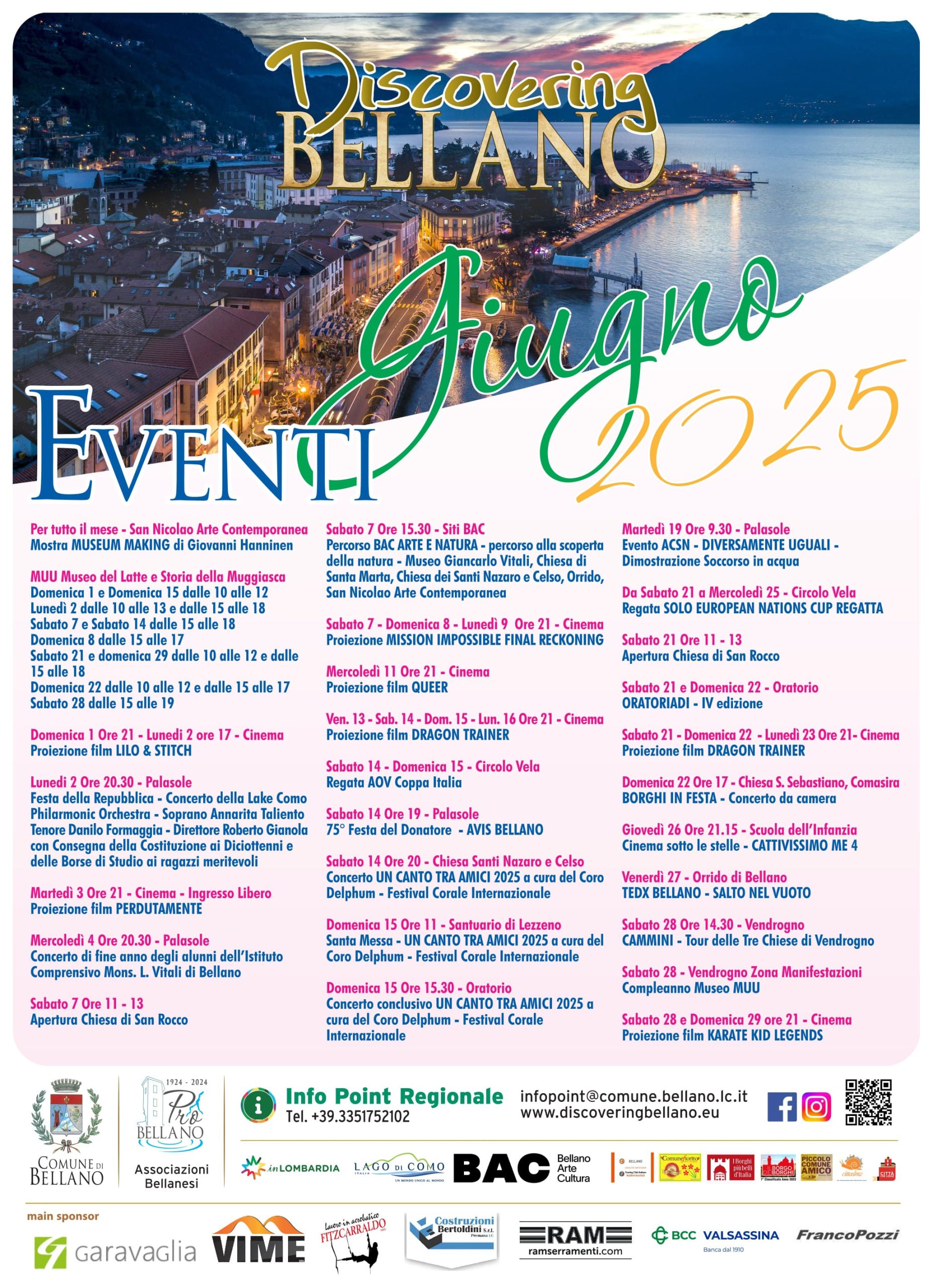 Il Sindaco Antonio Rusconi commenta così il calendario, organizzato insieme alla Pro Loco Bellano, Pro Vendrogno e al Cinema: “Il gran numero di eventi in programma testimonia la ricchezza e la varietà della proposta. A conti fatti, si tratta di più di un evento al giorno. Un mix di proposte pensate per accontentare tutti, con un occhio di riguardo alla cultura, che per Bellano ha un valore speciale: fra le altre cose, ci saranno le mostre nei siti BAC, la musica classica con la Turandot di Puccini, il gran galà del concorso lirico, la musica da camera nelle frazioni.