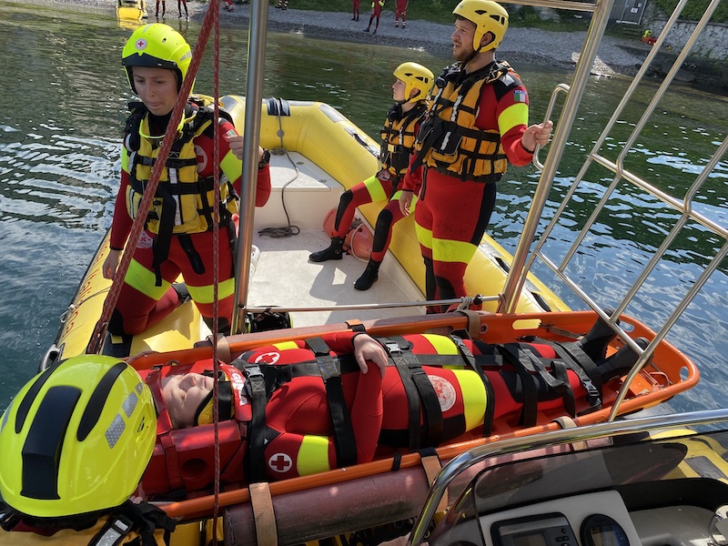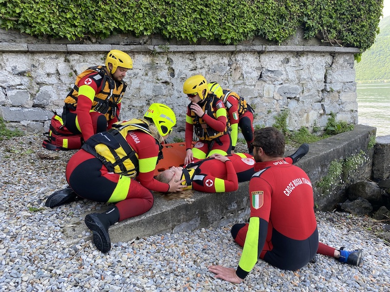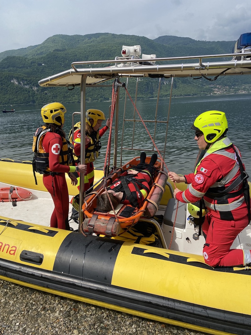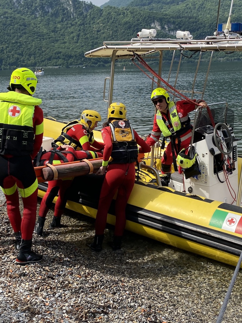 ABBADIA – Attività di addestramento ieri, domenica 4 maggio, per gli Operatori di Salvataggio in Acqua (OPSA) della Croce Rossa Italiana Comitato del Comprensorio Lecchese ad Abbadia Lariana in occasione del Micky Motor Day dove sono stati affrontati diversi scenari di intervento simulando traumi da tuffo e malori con la necessità di immobilizzare e barellare verso l’idroambulanza per l’evacuazione del paziente coinvolto.