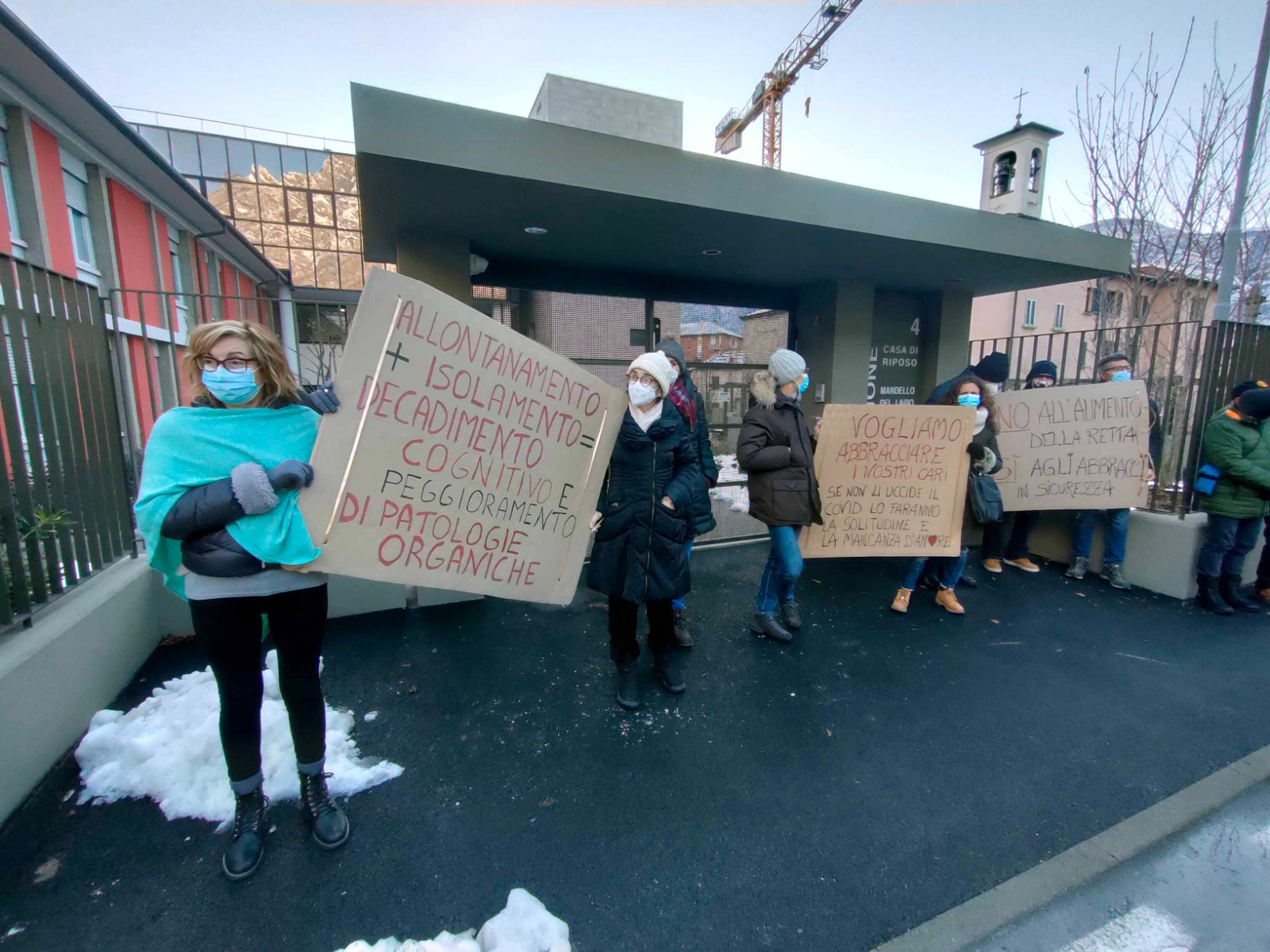 Il presidio di protesta fuori dalla casa di riposo di Mandello del Lario
