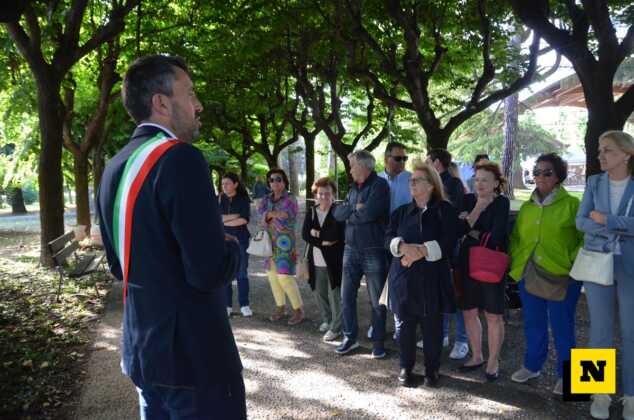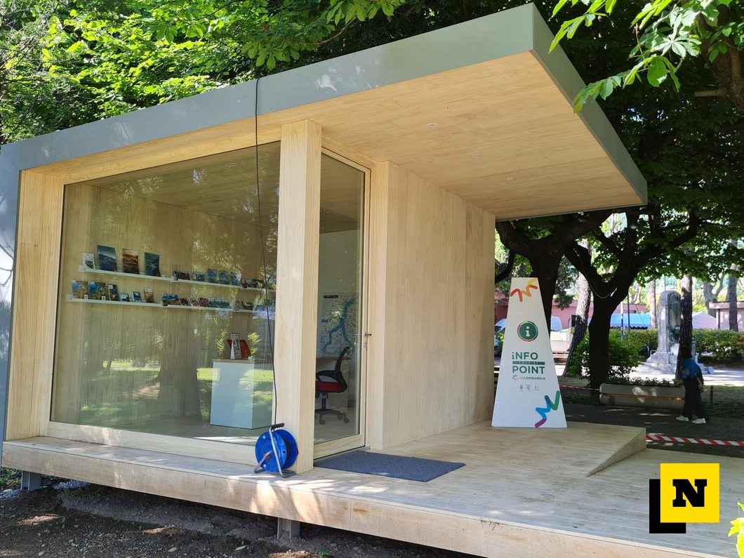 Quindi il sindaco Fasoli, accompagnato da assessori e consiglieri, ha fatto il punto sui giardini annunciando che presto sarà implementato il sistema di videosorveglianza. Successivamente ha accompagnato tutti i presenti a visitare il nuovo Infopoint posto all’inizio del viale centrale: “La nuova struttura, un po’ più grande e visibile della precedente, si integra nel contesto dei giardini. E’ stato possibile realizzare l’intervento a seguito di un bando di Regione Lombardia del 2020. Negli ultimi anni, con l’assessorato al turismo, abbiamo implementato l’apertura”.