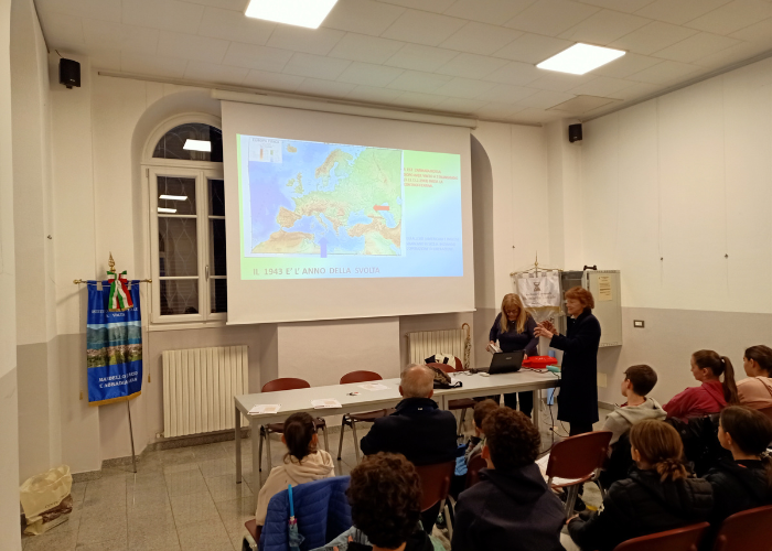 L’Assessora Pachera e la presidente Carizzoni, supportate da alcune proiezioni, hanno poi approfondito i temi legati alla storia della Seconda guerra mondiale e alla Resistenza a Mandello.