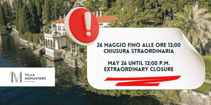 LECCO – La Provincia di Lecco ha disposto la chiusura al pubblico di Villa Monastero di Varenna nella mattina di lunedì 26 maggio fino alle 12.00 per effettuare in sicurezza operazioni di manutenzione del Giardino botanico.