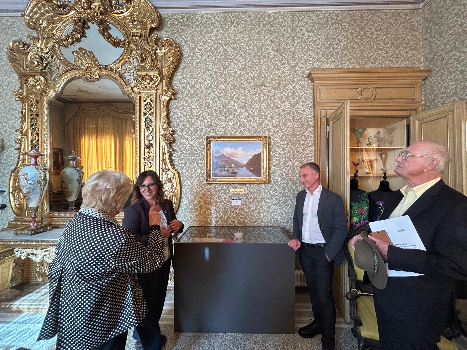 Durante la presentazione, Fondazione Timken ha donato un’opera d’arte pittorica, raffigurante il ramo orientale del Lago di Como, di Giuseppe Canella (1788-1847), autore noto in ambito internazionale ascrivibile alla metà del secolo XIX. L’opera è stata esposta nella sala Musica di Villa Monastero.