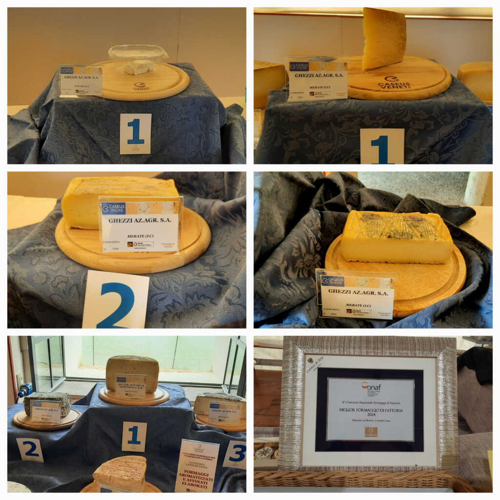 MERATE – Incetta di premi per l’azienda agricola Ghezzi di Pagnano, vincitrice di ben undici titoli a due concorsi rinomati nel settore della produzione casearia.