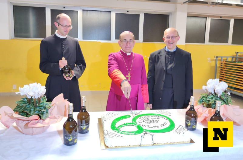 Dopo le foto di rito, l’arcivescovo è poi sceso al baretto dell’oratorio per tagliare la torta confezionata ad hoc per il 60esimo dell’oratorio.