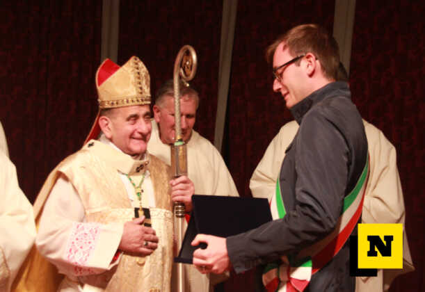 Al termine della funzione religiosa, accompagnata dal coretto, formato da storici cantori degli anni Novanta e Duemila, accompagnati alla tastiera dal sagrestano Franco Crippa, il sindaco ha voluto omaggiare Delpini con una targa.